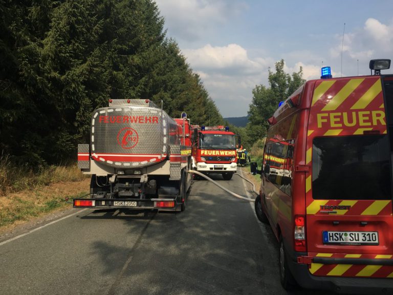 Sofort begannen die Einsatzkräfte mit den Löscharbeiten. Hierbei kamen mehrere Trupps unter Atemschutz mit C‑Strahlrohren und ein Dachmonitor von einem Tanklöschfahrzeug zum Einsatz. Zeitgleich wurde eine weitere Schlauchleitung von der