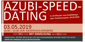 Wer eine oder mehrere dieser Fragen noch nicht sicher beantworten kann, ist am Freitag, 3. Mai von 9 bis 14 Uhr, und am Samstag, 4. Mai von 9 bis 13 Uhr eingeladen, die 10. Arnsberger Ausbildungsmesse im Kaiserhaus zu besuchen: