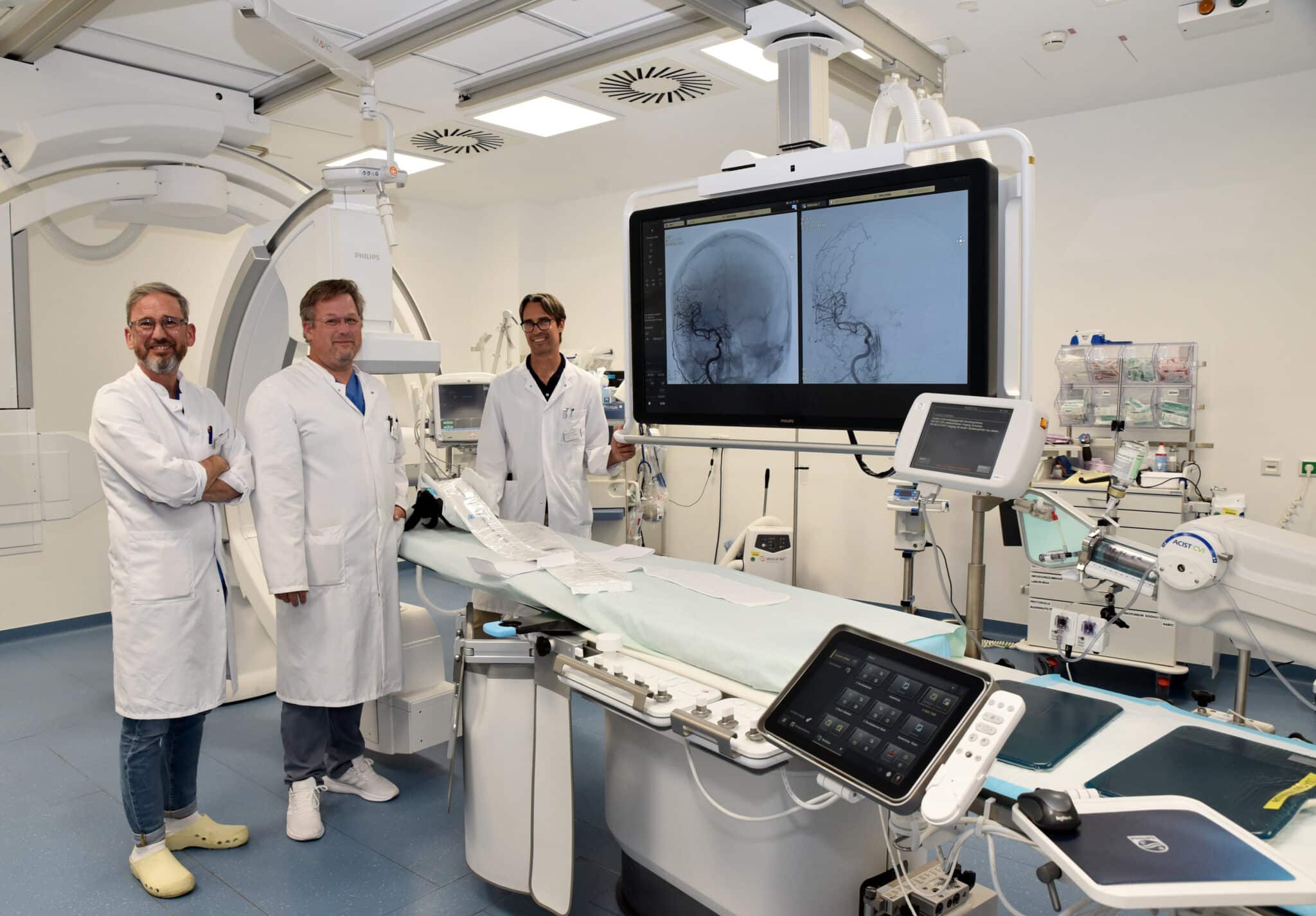 „Die Konzentration der Notfallversorgung am Notfall- und Intensivzentrum in Hüsten ermöglicht eine noch engere Kooperation der neurologischen Fachabteilungen und hat zudem kurze Wege geschaffen“, beschreiben Dr. med. Alexander Ranft, Chefarzt der Klinik für Interventionelle Radiologie und Neuroradiologie, sowie PD Dr. Armin Buss, Chefarzt der Klinik für Neurologie im Klinikum Hochsauerland. Zusammen mit den erweiterten Möglichkeiten der Klinik für Neurochirurgie von Chefarzt Priv.-Doz. Dr. med. Ludwig Benes, Schlaganfälle auch über operative Verfahren zu behandeln, ist eine umfassende und übergreifende Behandlung von neurologischen Notfallpatienten rund um die Uhr gewährleistet.
