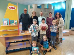 Neben dem För­der­ver­ein, ver­tre­ten durch Mari­on Frei­tag, freu­en sich beson­ders die Kin­der der Grund­schu­le Müg­gen­berg-Rusch über die finan­zi­el­le Unter­stüt­zung. Die Schul­bü­che­rei ist bei allen Kin­dern sehr beliebt und wird ger­ne genutzt.