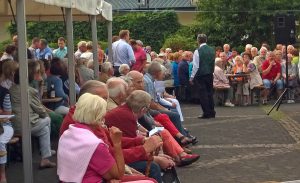 Mit teil­wei­se bis zu 400 Gäs­ten pro Ter­min war die Tra­di­ti­ons­ver­an­stal­tung Volks­bank-Däm­mer­schop­pen auf dem Franz-Josef-Tig­ges-Platz in den ver­gan­ge­nen Jah­ren immer ein vol­ler Erfolg. Auch in die­sem Jahr wer­den wie­der hei­mi­sche Musik­grup­pen an acht auf­ein­an­der fol­gen­den Don­ners­ta­gen für gute Musik und aus­ge­las­se­ne Stim­mung sor­gen. Dank des Haupt­spon­sors, der Volks­bank-Sau­er­land eG, kann die Ver­an­stal­tungs­rei­he der Stadt­mar­ke­ting Sun­dern eG, die beson­ders von der älte­re Gene­ra­ti­on Sun­derns besucht wird, dank Gäs­te- und Musik­erzelt bei jedem Wet­ter durch­ge­führt werden.
