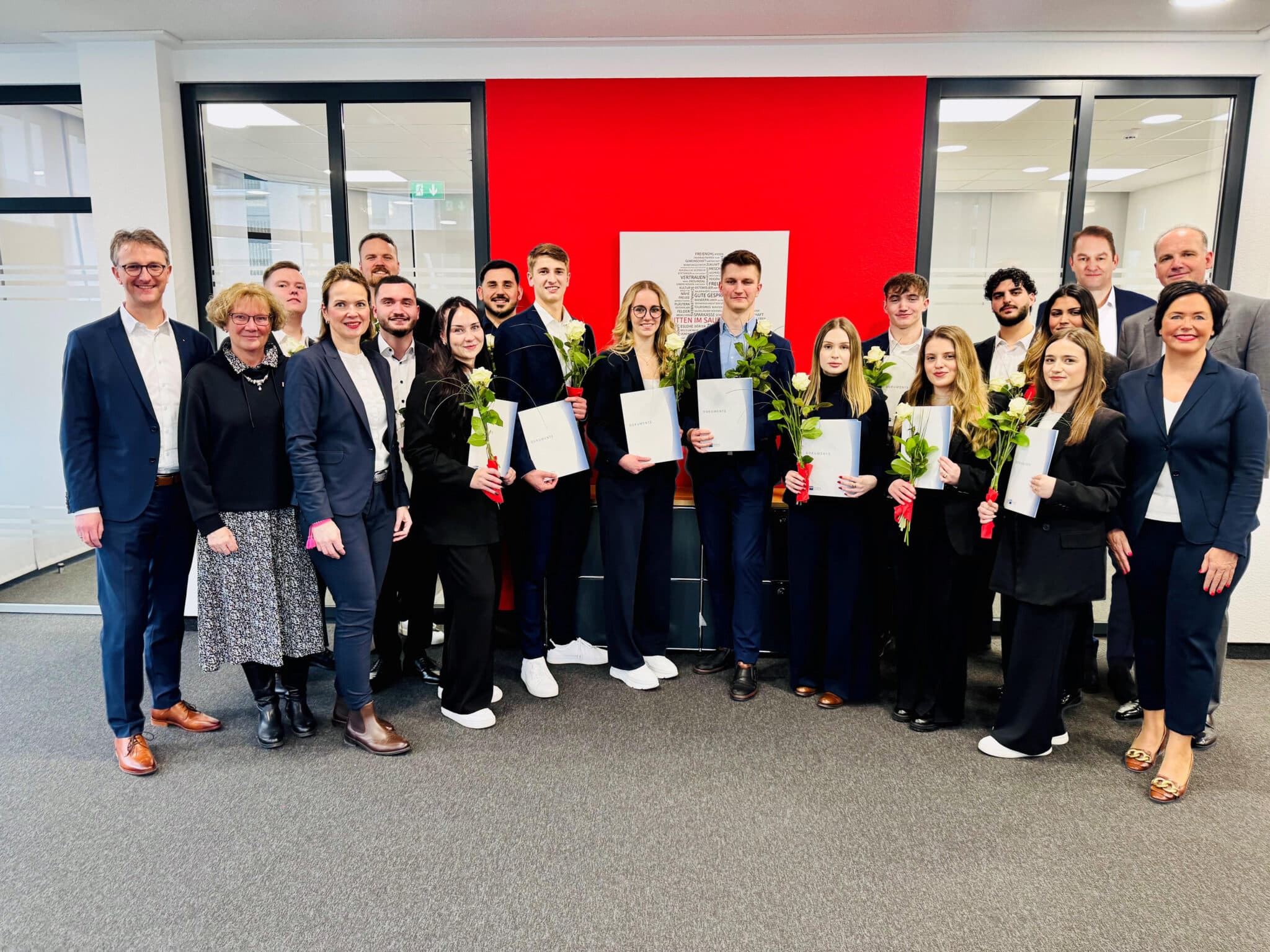 Meschede. Erfolgreicher Karrierestart für 16 junge Bankkaufleute: Die Auszubildenden der Sparkasse Mitten im Sauerland haben ihre Abschlussprüfung bestanden und werden alle in ein unbefristetes Arbeitsverhältnis übernommen. Damit setzt das heimische Kreditinstitut ein deutliches Signal für Kontinuität und Verlässlichkeit als großer Ausbildungsbetrieb in der Region. „Unsere 16 Nachwuchskräfte haben in den vergangenen Jahren viel gelernt, Verantwortung übernommen und gezeigt, wie engagiert sie sich für unsere Kundinnen und Kunden einsetzen“, betont Vorstandsvorsitzender Ingo Ritter. „Dass wir alle Auszubildenden übernehmen, ist ein klares Bekenntnis zum Standort und zu einer starken beruflichen Perspektive hier vor Ort.“