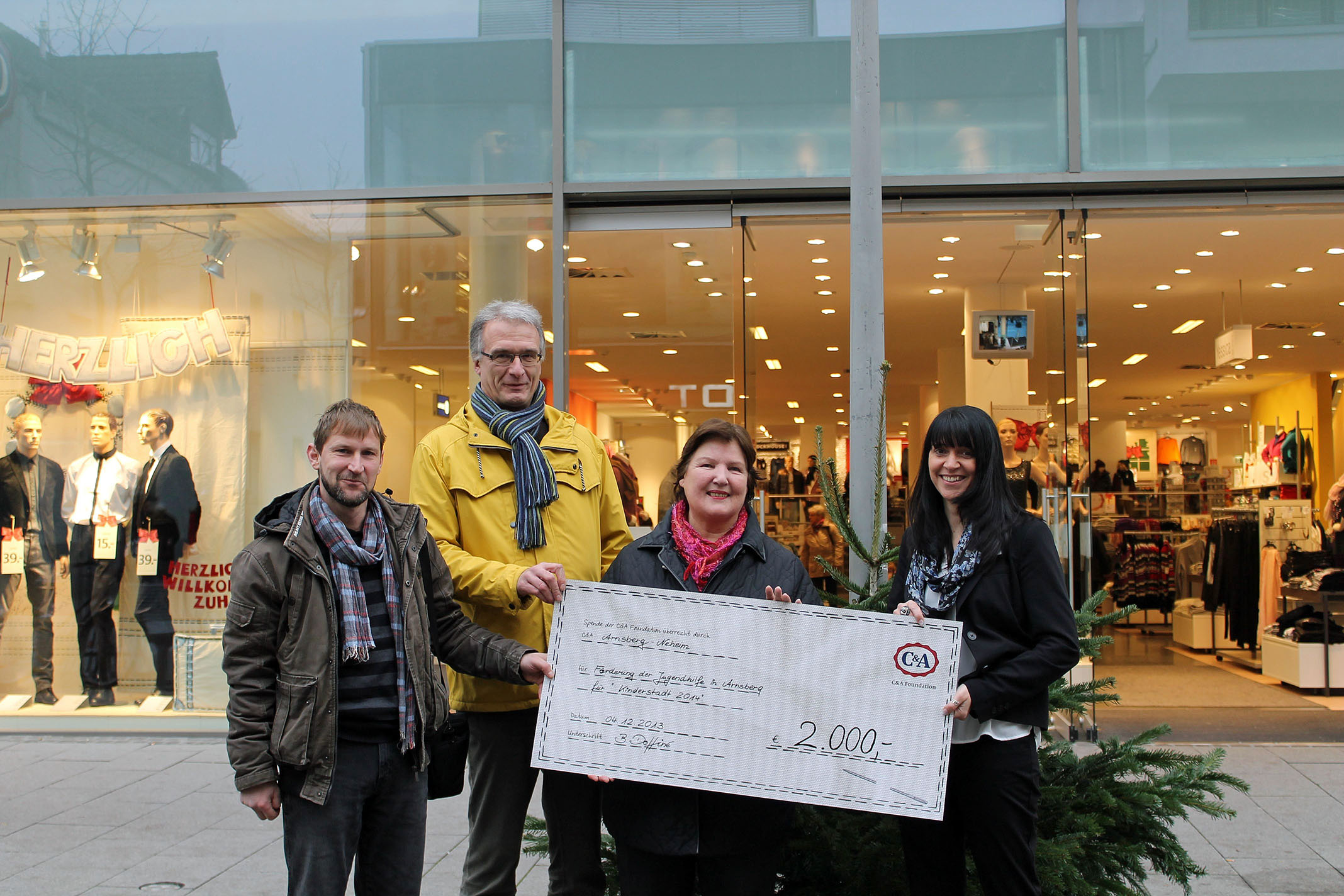 Neheim. Auch in diesem Jahr unterstützt die Arnsberger C&A‑Filiale die Kinderstadt. So spendete die C&A Foundation nun 2000 Euro an den Verein zur Förderung der Jugendhilfe in Arnsberg zur Unterstützung der Kinderstadt 2014. Die stellvertretende Bürgermeisterin Rosemarie Goldner, Elmar Dransfeld vom Verein zur Förderung der Kinder- und Jugendhilfe in Arnsberg e.V. und Christian Eckhoff vom Kinder‑, Jugend- und Familienbüro nahmen den Spendenscheck dankend entgegen Die Kinderstadt Arnsberg findet immer unter einem besonderen Thema für etwa 200 Kinder in den ersten Wochen der Sommerferien statt.