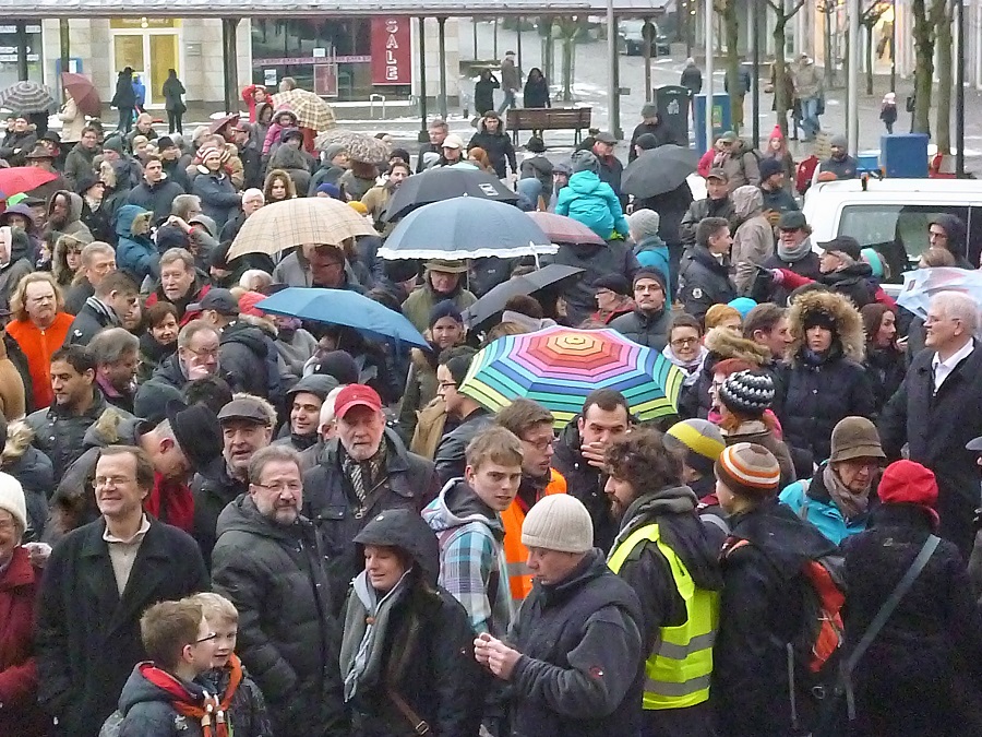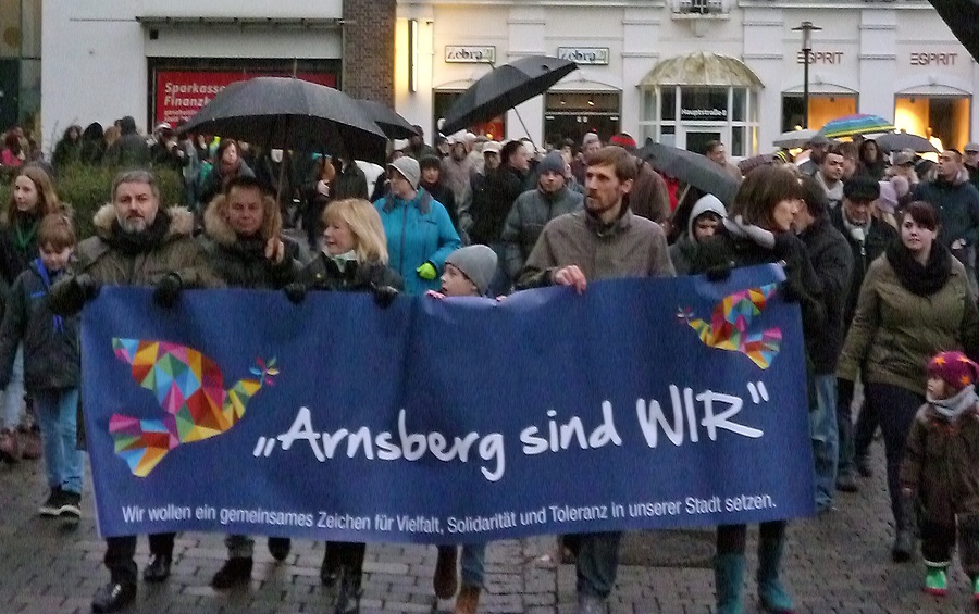 Gut eine halbe Stunde und weitgehend schweigend war die lange Karawane mit vielen Kindern über Apothekerstraße, Bexleyplatz und Hauptstraße unterwegs, bis sie wieder den Markt erreichte. Die Organisatoren Isolde Clasvogt und Tarik Ersöz zeigten sich sichtlich beeindruckt von so viel Beteiligung und so viel Bewegung in Arnsberg. Das Ziel, ein Zeichen zu setzen, sei voll gelungen, sagte Isolde Clasvogt bei der kurzen Verabschiedung. Und Tarek Ersöz sagte, dieser Spaziergang sei erst ein Anfang gewesen. „Wir werden noch weitere Aktionen starten!“
