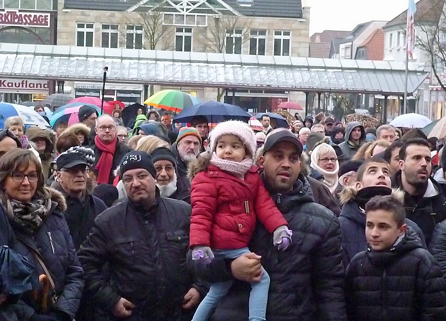 Gut eine halbe Stunde und weitgehend schweigend war die lange Karawane mit vielen Kindern über Apothekerstraße, Bexleyplatz und Hauptstraße unterwegs, bis sie wieder den Markt erreichte. Die Organisatoren Isolde Clasvogt und Tarik Ersöz zeigten sich sichtlich beeindruckt von so viel Beteiligung und so viel Bewegung in Arnsberg. Das Ziel, ein Zeichen zu setzen, sei voll gelungen, sagte Isolde Clasvogt bei der kurzen Verabschiedung. Und Tarek Ersöz sagte, dieser Spaziergang sei erst ein Anfang gewesen. „Wir werden noch weitere Aktionen starten!“
