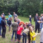 Das nunmehr schon 31. Vater-Kind-Zeltlager der Kolpingsfamilie Bruchhausen fand jetzt vom 16. bis zum 18. Juni 2017 auf dem Kolping-Jugendzeltplatz „13 Linden“ in Nieheim im Kreis Höxter statt. 58 Personen, die Kleinste und Jüngste gerade zweieinhalb Jahre alt, nahmen begeistert daran teil und erlebten tolle Tage mit Lagerolympiade, einem Besuch der Adlerwarte in Berlebeck und einem Ausflug zu den Externsteinen. Wie immer gehörten herrliche und lange Abende am Lagerfeuer mit Stockbrot zum erlebnisreichen Programm dazu. Am Samstag abend gab es anlässlich des 30-jährigen Jubiläums zum Staunen der Kinder sogar ein eigenes Feuerwerk.