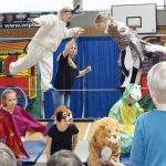 Bei der Abschlussvorstellung konnten Eltern, Großeltern, Geschwister und alle Zirkusfreunde großartige Attraktionen auf den Laufkugeln, am Trapez und Drahtseil erleben. Clowns und Zauberer brachten das Publikum mit ihren Kunststücken und kleinen gespielten Geschichten immer wieder zum Lachen und Staunen. Die Fakire zeigten Ihren Mut, indem sie in Scherbenhaufen sprangen und Nagelbretter als bequeme Liegefläche nutzten. Immer wieder wurden die jungen Zirkusleute vom begeisterten Publikum mit großem Beifall bedacht.