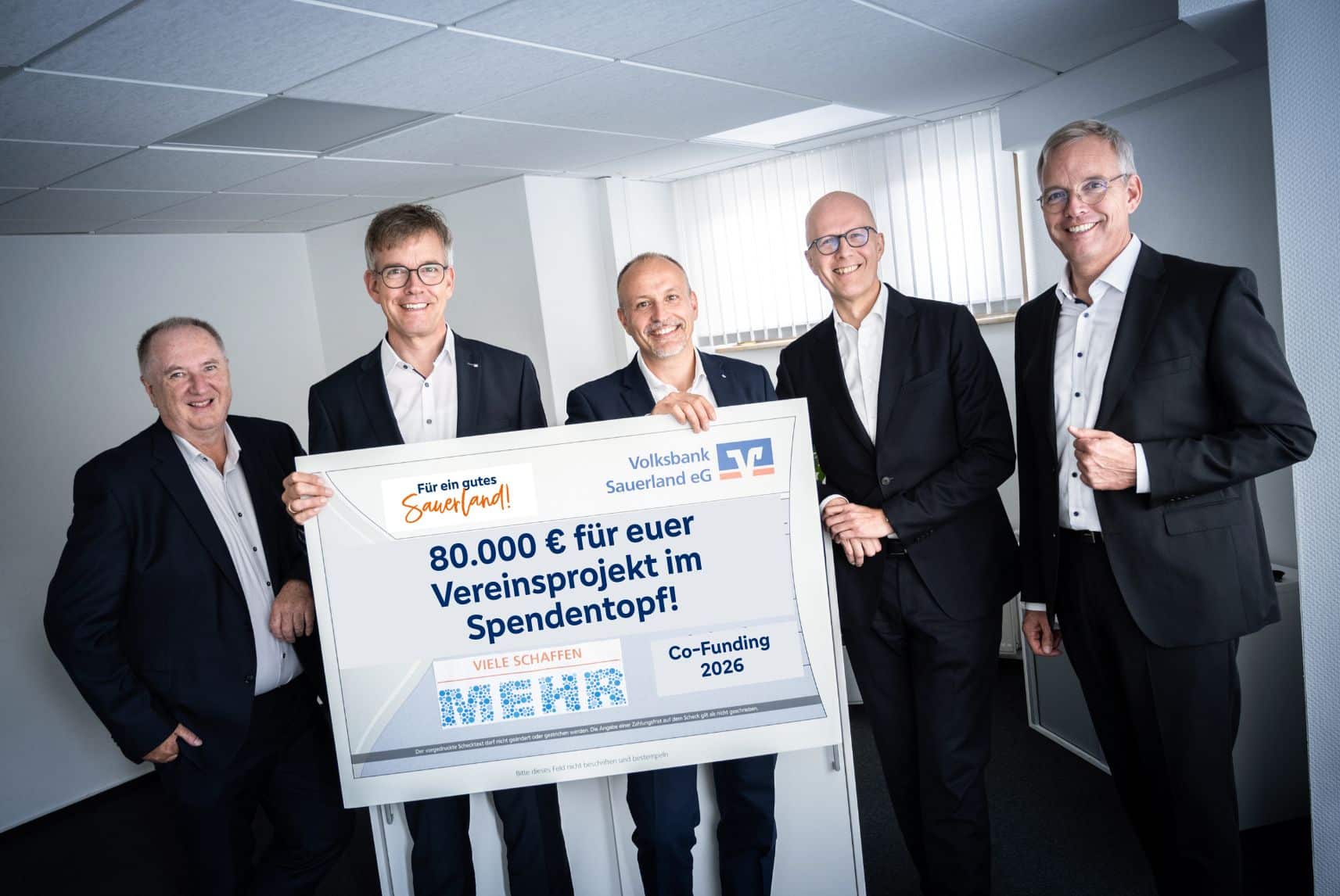 Hochsauerlandkreis. Gemeinschaft wirkt – und sie wächst weiter: Zum Start ins neue Jahr setzt die Volksbank Sauerland erneut ein starkes Zeichen für regionales Engagement. Der Co-Funding-Spendentopf der Crowdfunding-Plattform „Viele schaffen mehr“ ist für 2026 mit 80.000 Euro gefüllt. In den letzten 10 Jahren wurden rund 500.000 Euro an zusätzlichem Co-Funding an Projekte in der Region ausgezahlt.