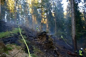 Endorf. Am frühen Dienstag abend gegen 18 Uhr wurden die Löschgruppen Endorf und Meinkenbracht sowie der Einsatzleitwagen von der Feuerwache Sundern zu einem Brand in einem Waldgebiet oberhalb von Endorferhütte alarmiert. Ein aufmerksamer Beobachter hatte der Kreisleitstelle zuvor die Rauchentwicklung im Wald gemeldet.