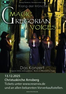 UPDATE (11.11.2025): Der Veranstaltungsort des Konzerts der „Magic Gregorian Voices“ wurde verlegt.