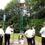 Der Rest des zähen Vogels fiel nach einem letzten guten Treffer von Alexander Pusch im 187. Schuss, wobei er noch ein wenig auf der Schraube herumtanzte. Der neue König hatte sich zuvor – bei bestem Festwetter und gutem Besuch – einen spannenden Dreikampf mit Stefan Mairing und Dirk Scharfe geliefert. Alexander Pusch hatte auch mit dem rechten Flügel die letzte Trophäe abgeschossen. Die Krone holte Manuel Litwer, den Reichsapfel Daniel Litwer, das Zepter Friedel Götz und den linken Flügel Tim Lichtenberg. Den erstmals ausgeschossenen Schnabel sicherte sich die Ex-Königin Monika Lutze.