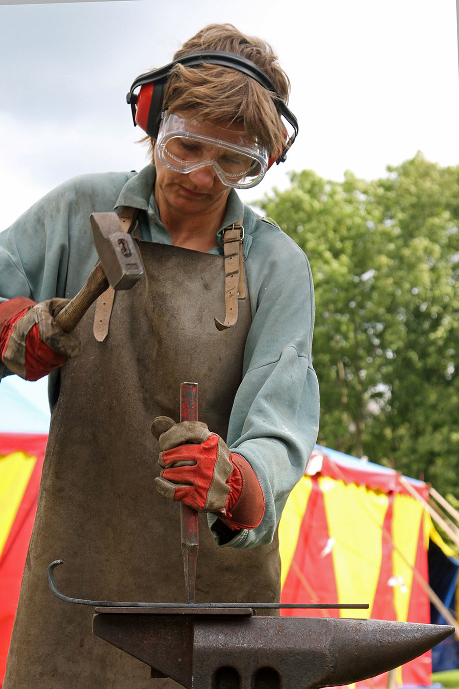 Im ver­gan­ge­nen Kunst­som­mer war bereits die „Rei­sen­de Kunst­schu­le: Feu­er und Eisen“ in der Alt­stadt zu Gast. Auch in die­sem Jahr kön­nen Teil­neh­mer und Besu­cher unter fach­kun­di­ger Anlei­tung des Künst­lers Bernd Ban­nach am letz­ten Kunst­som­mer­wo­chen­en­de einen Blick ins Feu­er ris­kie­ren und erle­ben, wie rot glü­hen­des Eisen eine neue Gestalt annimmt. Die Schmie­de­luft selbst wird zur Inspi­ra­ti­on für Skulp­tu­ren, Wind­spie­le oder auch Schmuck. Tech­ni­ken wie Spal­ten, Lochen, Löten, Schneid­bren­nen und auch Feu­er­schwei­ßen wer­den ver­mit­telt. Die berühm­ten Bären­kräf­te sind dazu nicht not­wen­dig. In die­sem Work­shop für Erwach­se­ne und Jugend­li­che ab 16 Jah­ren sind noch zwei Plät­ze frei.