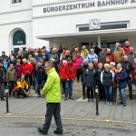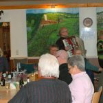 Die Wanderung verlief durch die Altstadt, Jägerbrücke, Obereimer, und über den Ruhrtalradweg zunächst bis Niedereimer. Nach einer kurzen Pause übernahm ein Wanderführer der einladenden Abteilung, Reinhard Hültenschmidt. Er leitete die erwartungsvollen Wanderer durch Bruchhausener Wohngebiete und über Waldwege bis zum gastlich hergerichteten SGV-Heim. Detlef Herbst begrüßte hier offiziell die inzwischen auf etwa 110 Gäste „angewachsene“ Schar und zeigte sich dabei begeistert. Den „hungrigen Mäulern und durstigen Kehlen“ wünscht er schließlich schöne Stunden im SGV-Heim, in dem sich seine Mannschaft auf alle Annehmlichkeiten vorbereite hatte. Nicht nur Kaffee und selbstgebackene Torten verwöhnten die Anwesenden, sondern auch „Entenburger“ und reichlich passende Getränke. Heizpilze im angebauten Partyzelt, sowie Klatsch und Tratsch mit inzwischen bekannten Mitwanderern aus jedem Winkel Arnsbergs trugen zur Gemütlichkeit bei. Feiermusik aus Lautsprechern und – ganz besonders – die „Stimmungsmache“ durch Wilhelm Wilmes mit seinem Akkordeon, ebenfalls Mitglied der SGV-Abteilung Bruchhausen, brachten die Gäste dann auf Hochtouren. Im Vereinsheim der Bruchhausener SGV-er „steppte der Bär und rockte die Ente“ bis in die dunklen Abendstunden.