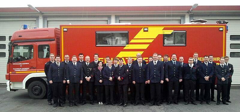 Im Kreisfeuerwehrhaus an der Arnsberger Ruhrstraße wurde das angehende Fernmeldepersonal in 30 theoretischen und praktischen Unterrichtsstunden geschult. „Neben theoretischen Lerninhalten wie etwa rechtlichen und physikalischen Grundlagen, taktischem Grundwissen, Fahrzeug- und Gerätekunde sowie der Abwicklung des Sprechfunkverkehrs kam im Rahmen von zwei Sprechfunkübungen auch die Praxis unter realistischen Kommunikationsbedingungen nicht zu kurz,“ berichtet Brandinspektor Dietmar Koch, der Leiter des Fernmeldedienstes bei der Freiwilligen Feuerwehr Arnsberg. Die abschließende Prüfung wurde vom stellvertretenden Kreisbrandmeister Werner Franke und dem stellvertretenden Leiter der Arnsberger Feuerwehr Martin Känzler abgenommen. Sie konnten im Anschluss allen Wehrleuten eine erfolgreiche Prüfungsteilnahme bescheinigen. Hierüber freuten sich mit den neuen Sprechfunkern auch Dietmar Koch als Lehrgangsleiter und sein Ausbilder-Team.