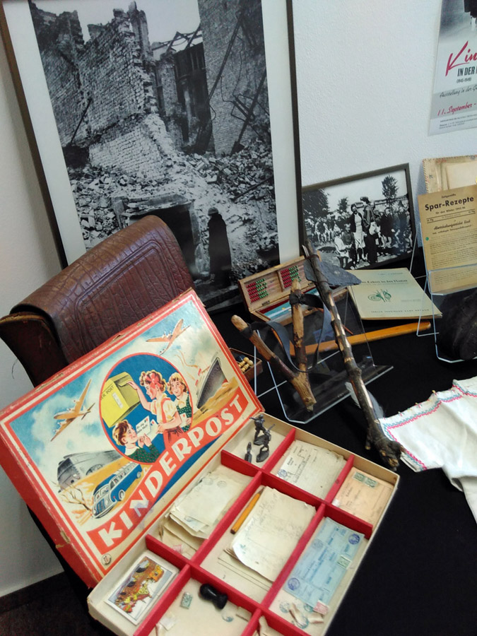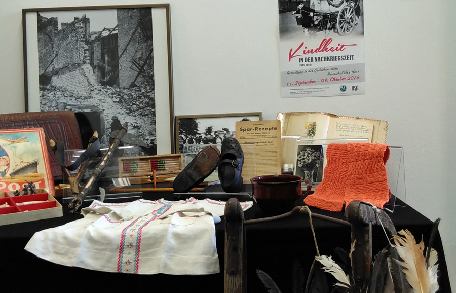 Zu der Fotografieausstellung, die als Wanderausstellung von der Museumslandschaft des Hochsauerlandkreises konzipiert wurde, haben einige Menschen aus Sundern und Umgebung ihre persönlichen Sammlungen geöffnet und stellen ihre Erinnerungsgegenstände aus der Zeit von 1945 bis 1955 als Leihgabe in der Ausstellung zur Verfügung. Ganz besonders ergreifend ist ein Becher, der aus einer Handgranate gefertigt wurde oder auch Kochrezepte, die unter dem Titel „Spar-Rezepte – abwechslungsreiche Kost trotz zeitbedingter Nahrungsmittelknappheit“ herausgegeben wurden. Zusammen mit den Fotografien zeigen die Ausstellungsstücke aber auch den beginnenden Neuanfang und Aufbruch.