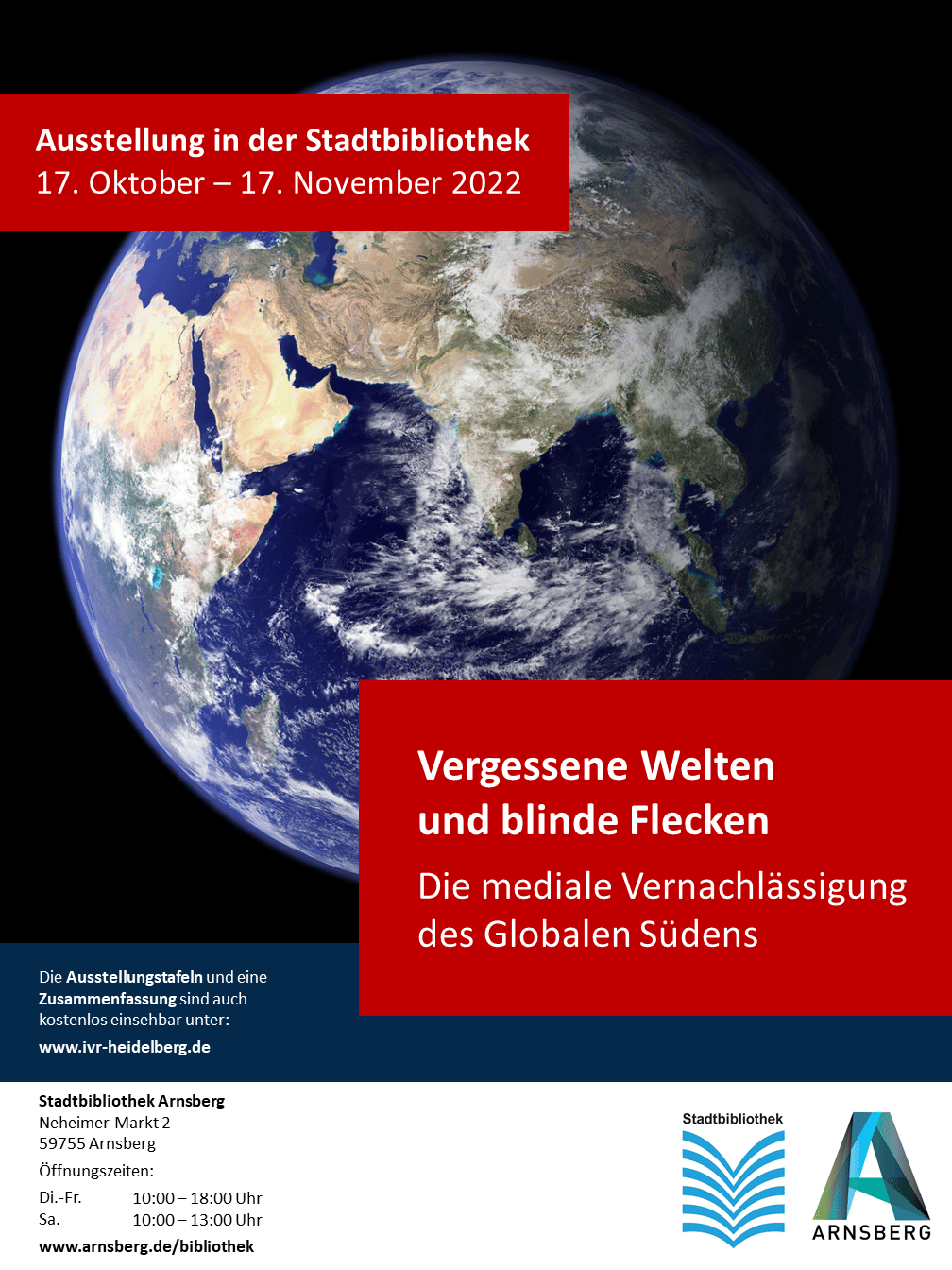 Die Wanderausstellung beschäftigt sich mit der geografischen Unausgewogenheit der Berichterstattung sogenannter Leitmedien und präsentiert interessante Ergebnisse einer wissenschaftlichen Langzeitstudie. Demnach werde dem „typischen“ Westen überproportional hohe Aufmerksamkeit gewidmet, während zahlreiche Staaten des Globalen Südens vernachlässigt oder sogar ignoriert würden. Nur ein Bruchteil der Sendezeit entfalle auf diese Staaten, die auch als Dritte-Welt-Staaten oder Entwicklungsländer bezeichnet werden.
