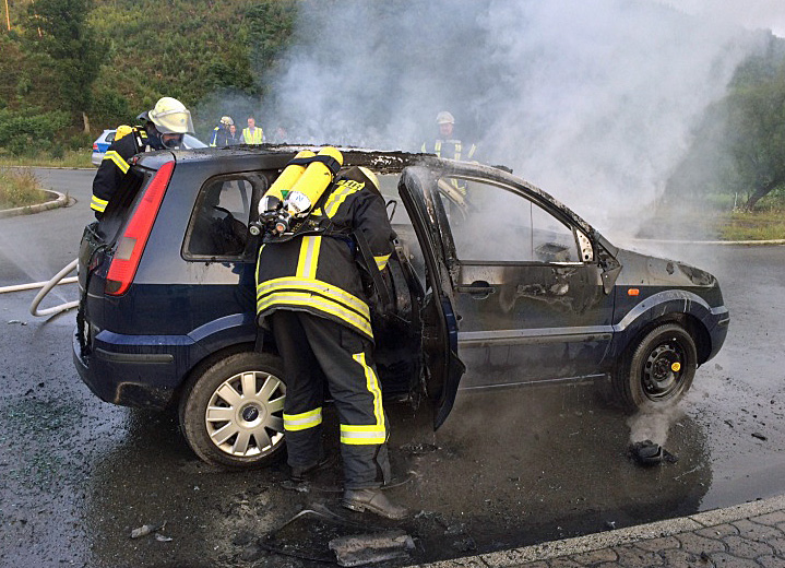 Sundern. Am frühen Mittwoch morgen wurde der Löschzug Sundern zu einem Fahrzeugbrand in das Industriegebiet „Zum Dümpel“ gerufen. Hier brannte im Wendehammer, kurz vor der Röhrbrücke, auf der Zufahrt zum Wertstoffhof ein Pkw in voller Ausdehnung. Das Feuer konnte mit Wasser und Zusatz von Schaummittel schnell gelöscht werden. Für das Fahrzeug kam jedoch leider jede Hilfe zu spät – es brannte vollständig aus und musste abgeschleppt werden. Der Löschzug Sundern war mit zwei Fahrzeugen und 17 Kameraden vor Ort.
