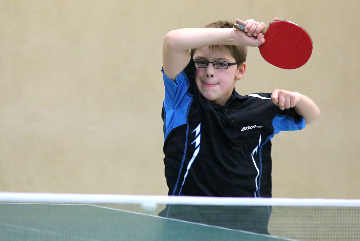 Sun­dern. Bas­ti­an Steeg erreich­te am Wochen­en­de sou­ve­rän die Qua­li­fi­ka­ti­on zur End­rang­lis­te des West­deut­schen Tisch­ten­nis­ver­ban­des und gehört somit zu den bes­ten neun C‑Schülern in NRW. Am Sams­tag fand in Röding­hau­sen an der nord­öst­li­chen Gren­ze Nord­rhein-West­fa­lens die Rang­lis­ten­qua­li­fi­ka­ti­on der C‑Schüler statt. Vom TuS Sun­dern nah­men Pau­la Lüb­ke und Bas­ti­an Steeg teil. Für Bas­ti­an Steeg lief es von Beginn an rund. Gegen sein Angst­geg­ner Anh Quan Nguy­en erleb­te er einen Tur­nier­start nach Maß. Durch sei­nen 3:2 Sieg ging er mit jeder Men­ge Selbst­ver­trau­en in die nächs­ten Par­tien. Es folg­te ein sou­ve­rä­nes 3:0 gegen Jus­tus von Ban­de­mer von Borus­sia Düs­sel­dorf. Auch Spiel 3 ende­te mit 3:0, das vier­te Spiel konn­te er mit 3:1 für sich ent­schei­den. Im letz­ten Vor­run­den­spiel kämpf­te er sich durch einen rich­ti­gen Thril­ler. Nach 0:2 und 6:10 Rück­stand sieg­te er noch mit 11:1 im Ent­schei­dungs­satz. Glück hat­te er dabei vor allem in Satz 3, als sein Kon­tra­hent beim Stand von 8:10 zwei gro­ße Chan­cen ver­gab, sei­ne Match­bäl­le zu ver­wan­deln. Damit hat­te Steeg sei­ne Grup­pe mit 5:0 Spie­len und 15:5 Sät­zen klar gewon­nen. Auch in die Zwi­schen­run­de star­te­te er am Nach­mit­tag furi­os. Sei­ne ers­ten bei­den Spie­le konn­te er mit 3:0 und 3:1 deut­lich gewin­nen. Im drit­ten Ein­zel trat er aber schließ­lich gegen den kla­ren Favo­ri­ten Richard Kös­ter-Heu­schen an, dem er zwar lan­ge Paro­li bie­ten konn­te, der aber in den ent­schei­den­den Situa­tio­nen abge­klär­ter agier­te. Ergeb­nis war eine am Ende doch kla­re 1:3 Nie­der­la­ge. Mit die­sem zwei­ten Platz erreich­te Bas­ti­an aber uner­war­tet die End­rang­lis­te der 9 bes­ten C‑Schüler des Verbands.
