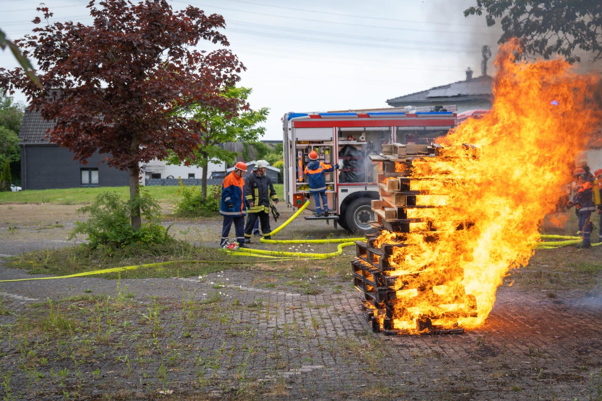 Den Abschluss bildete ein Holzstapelbrand auf einem Parkplatz, der mit drei Strahlrohren erfolgreich bekämpft wurde.