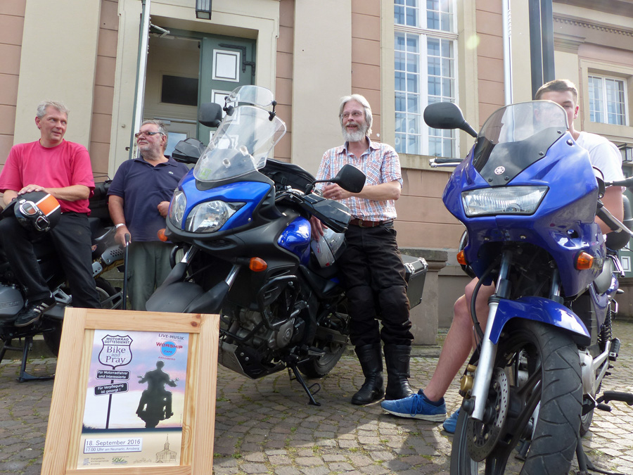 Wie in jedem Worship-Café wird es auch beim Motorrad-Gottesdienst viel Musik geben, eine kurze Ansprache und anschließend einen Imbiss. Für die Band wird eine große Bühne auf dem Neumarkt aufgebaut, die Biker können ihre Motorräder dort abstellen oder – neben ihnen stehend –den Gottesdienst feiern. Auch Interessierte ohne Motorrad sind selbstverständlich eingeladen.