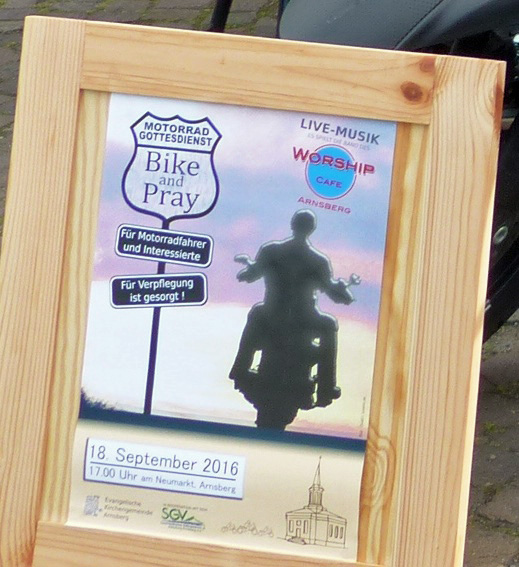Für Sievert ist wichtig, „dass wir die Opfer von Unfällen Gott anvertrauen.“ Beide lieben am Motorrad, dass der Kontakt zur Natur so intensiv ist: „Man spürt den Wind, die Sonne und auch den Regen sehr direkt.“ Und man sei angewiesen auf gegenseitige Rücksichtnahme aller Verkehrsteilnehmer. Der Rausch der Geschwindigkeit sei für sie weniger entscheidend als die Fahrt über kurvige Landstraßen durch bildschöne Gegenden. Für Wolfgang Ploog, Presbyter und Pressesprecher der Arnsberger Protestanten, gehört der Biker-Gottesdienst zu den Experimenten, mit denen die Kirchengemeinde „eher außergewöhnliche Schritte einschlägt.“