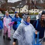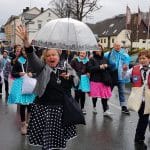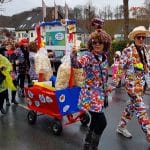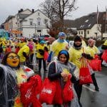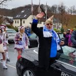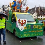 Arns­berg. Auch vom eher unfreund­li­chen Wet­ter mit Wind und Sprüh­re­gen lie­ßen sich eini­ge tau­send Arns­ber­ger und Gäs­te nicht von ihrem Besuch beim Arns­ber­ger Kar­ne­vals­sonn­tags­zug abhal­ten. Auch hun­der­te von Akti­ven hat­ten ihren Spaß im von der KLA­KAG orga­ni­sier­ten „Lind­wurm der Freude“.