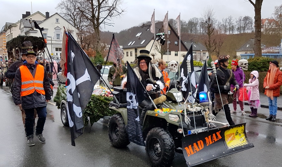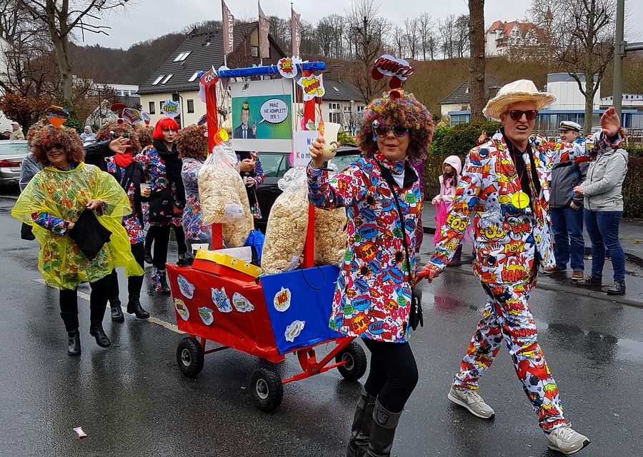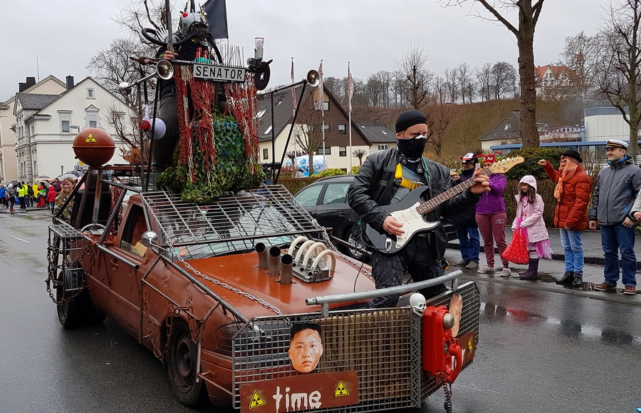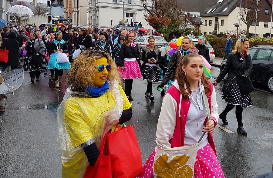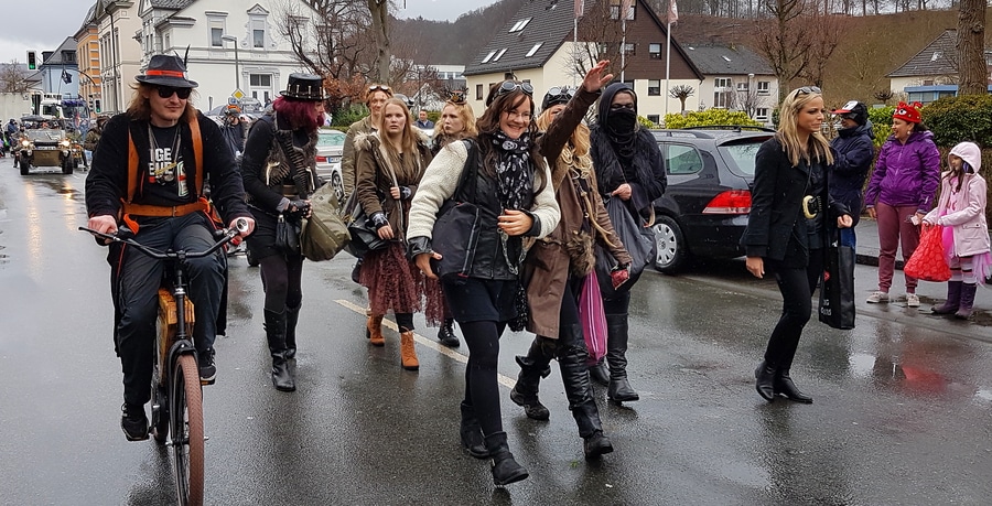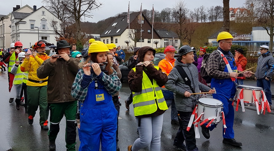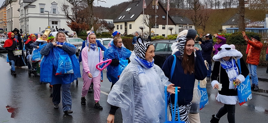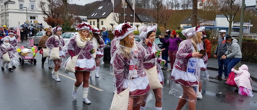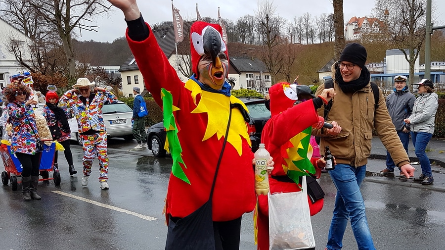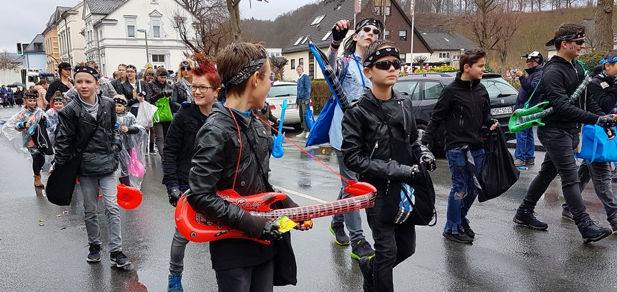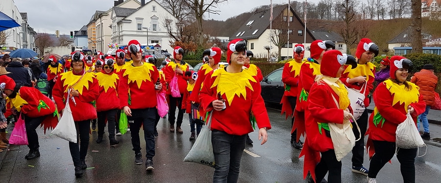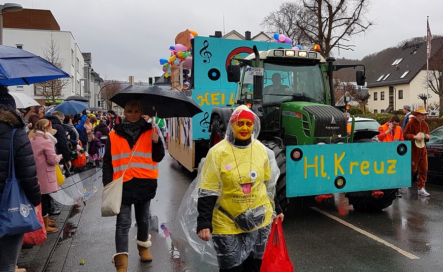 Arnsberg. Auch vom eher unfreundlichen Wetter mit Wind und Sprühregen ließen sich einige tausend Arnsberger und Gäste nicht von ihrem Besuch beim Arnsberger Karnevalssonntagszug abhalten. Auch hunderte von Aktiven hatten ihren Spaß im von der KLAKAG organisierten „Lindwurm der Freude“.