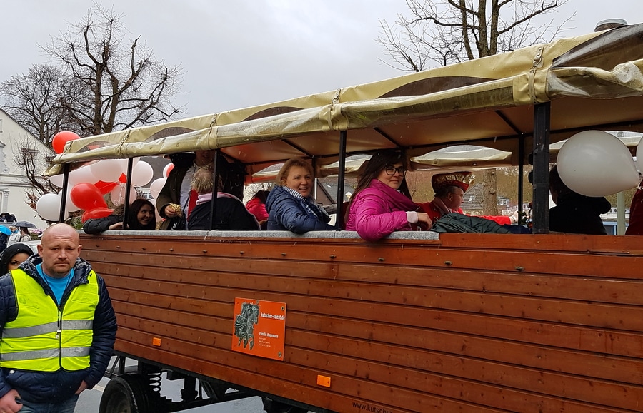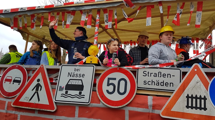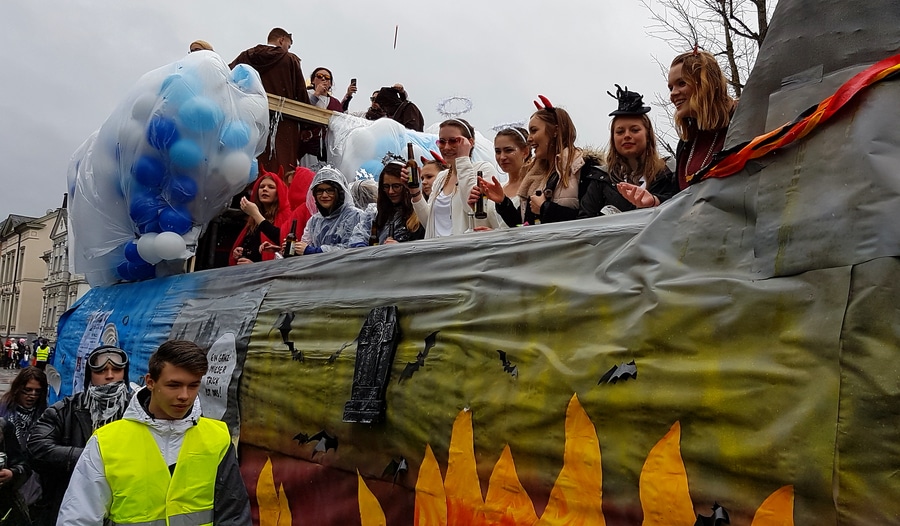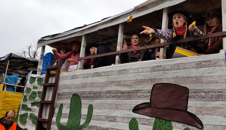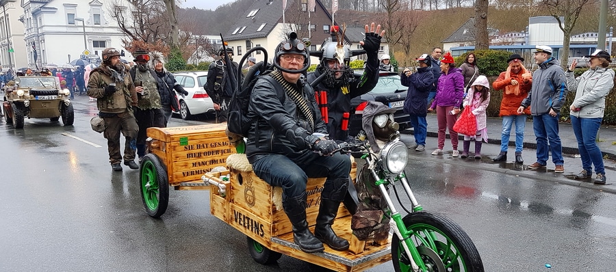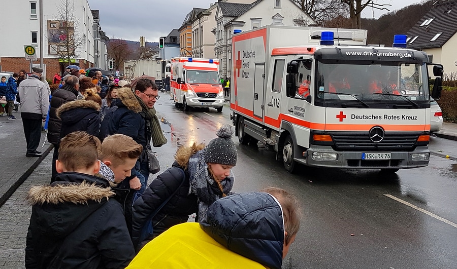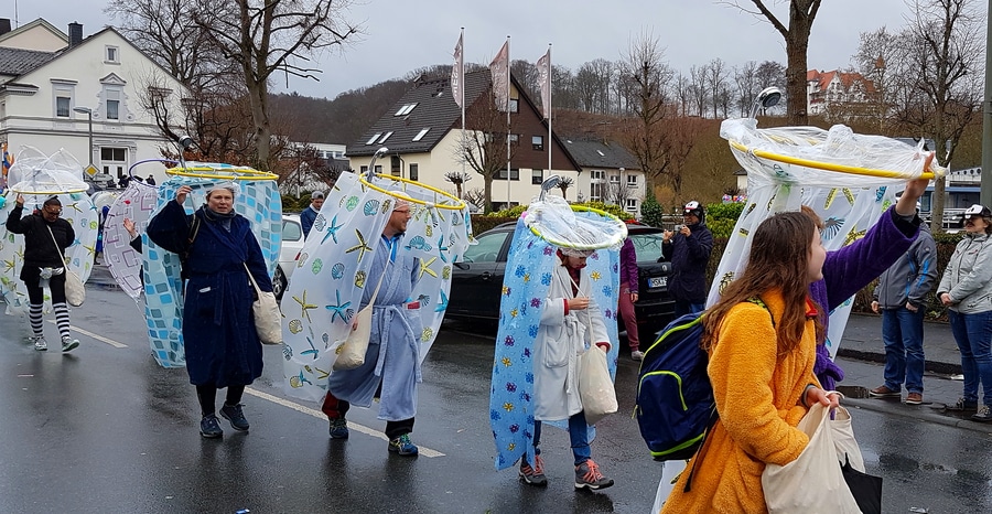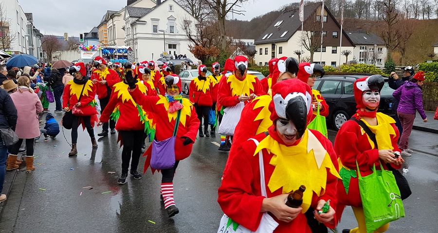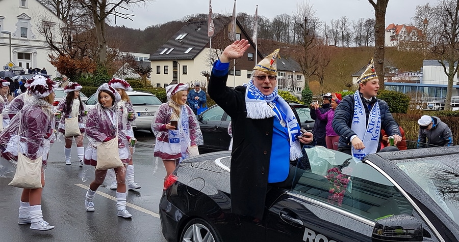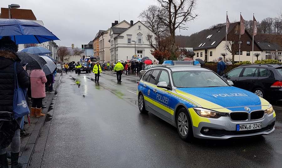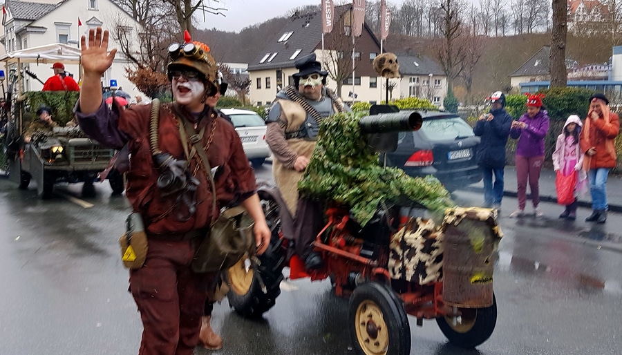 Arnsberg. Auch vom eher unfreundlichen Wetter mit Wind und Sprühregen ließen sich einige tausend Arnsberger und Gäste nicht von ihrem Besuch beim Arnsberger Karnevalssonntagszug abhalten. Auch hunderte von Aktiven hatten ihren Spaß im von der KLAKAG organisierten „Lindwurm der Freude“.