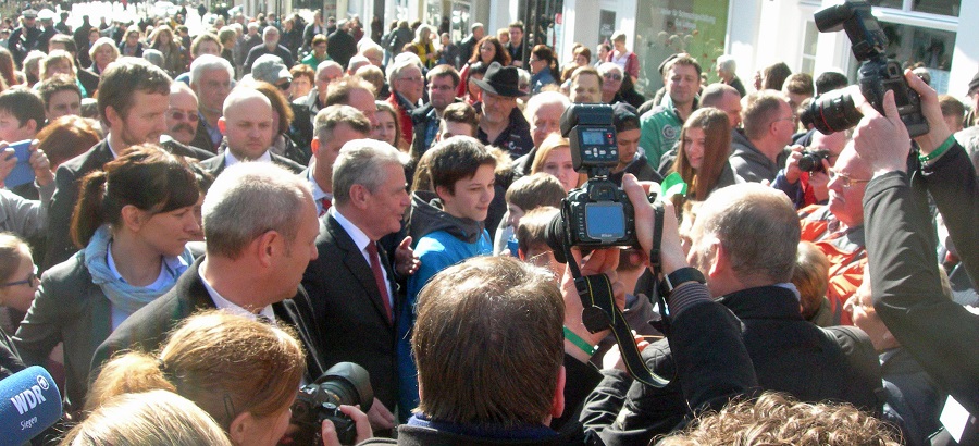 Arnsberg. Hier die Bilder vom Besuch des Bundespräsidenten Joachim Gauck in Arnsberg. Die meisten entstanden beim überwältigenden Bad in der Menge auf Steinweg und altem Markt, einige auch am und im Bürgerbahnhof und beim offiziellen Empfang im Alten Rathaus. (Fotos: Detlef Schlüchtermann/Oskar Eichhorst)