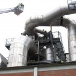 Durch einen geziel­ten und von meh­re­ren Sei­ten vor­ge­tra­ge­nen Lösch­an­griff gelang es den unter Atem­schutz vor­ge­hen­den Ein­satz­kräf­ten, den Brand im Abluft­sys­tem schnell unter Kon­trol­le zu brin­gen. Über meh­re­re Revi­si­ons­öff­nun­gen wur­den die Brand- und Glut­nes­ter abge­löscht, wofür auch eine Dreh­lei­ter auf einer ent­lang des Fir­men­ge­län­des ver­lau­fen­den Stra­ße in Stel­lung gebracht wur­de, da sich die zwölf Brand­ob­jek­te in einer grö­ße­ren Höhe befan­den. Die in der Tro­cken­an­la­ge ver­blie­be­nen Holz­spä­ne wur­den im Zuge einer Not­fall-Schal­tung auto­ma­tisch in einen sepa­ra­ten Sam­mel­be­häl­ter trans­por­tiert, um eine wei­te­re Aus­brei­tung des Bran­des zu verhindern.