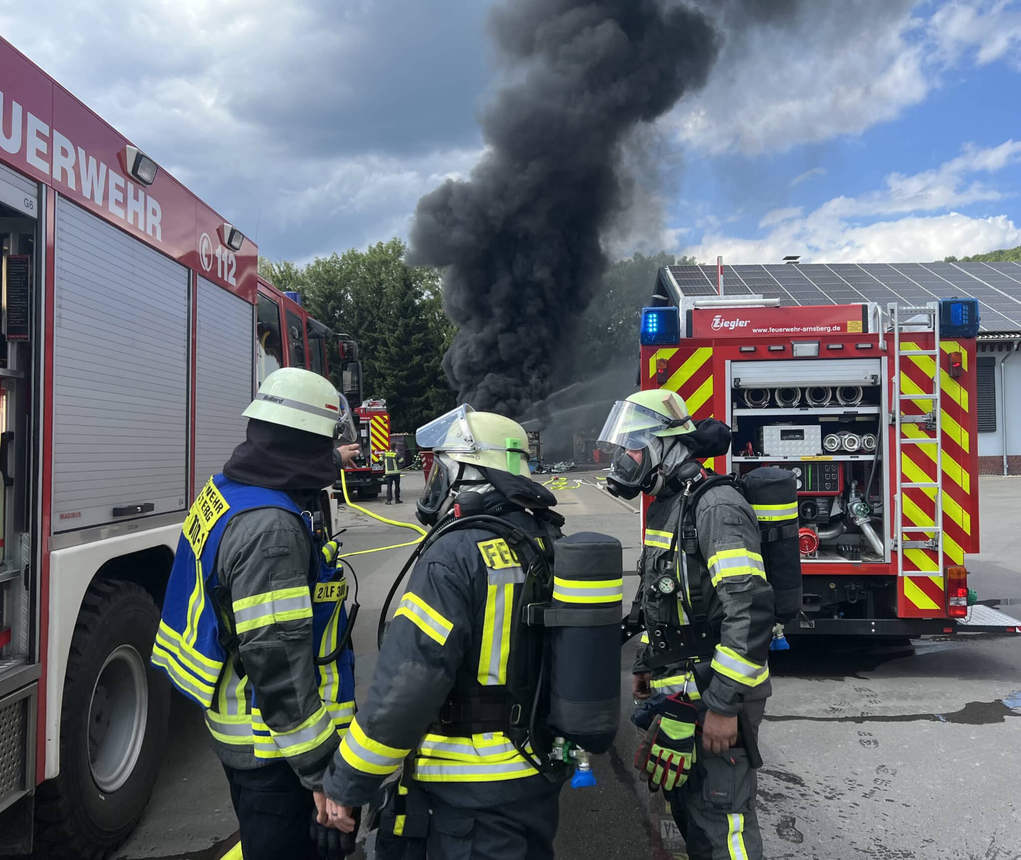Arnsberg. Am Dienstagnachmittag wurde die Feuerwehr Arnsberg um 15:52 Uhr zu einem Brand in einem Recyclingbetrieb in Bahnhofsnähe alarmiert. Beim Eintreffen der Einsatzkräfte standen zwei große Container mit Elektroschrott in Vollbrand. Es kam zu erheblicher Rauchentwicklung.