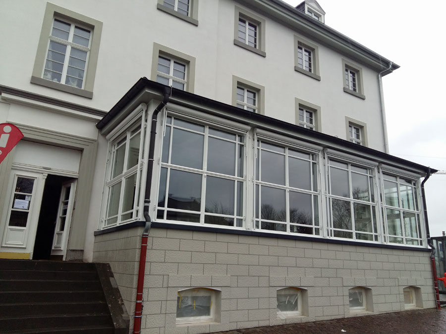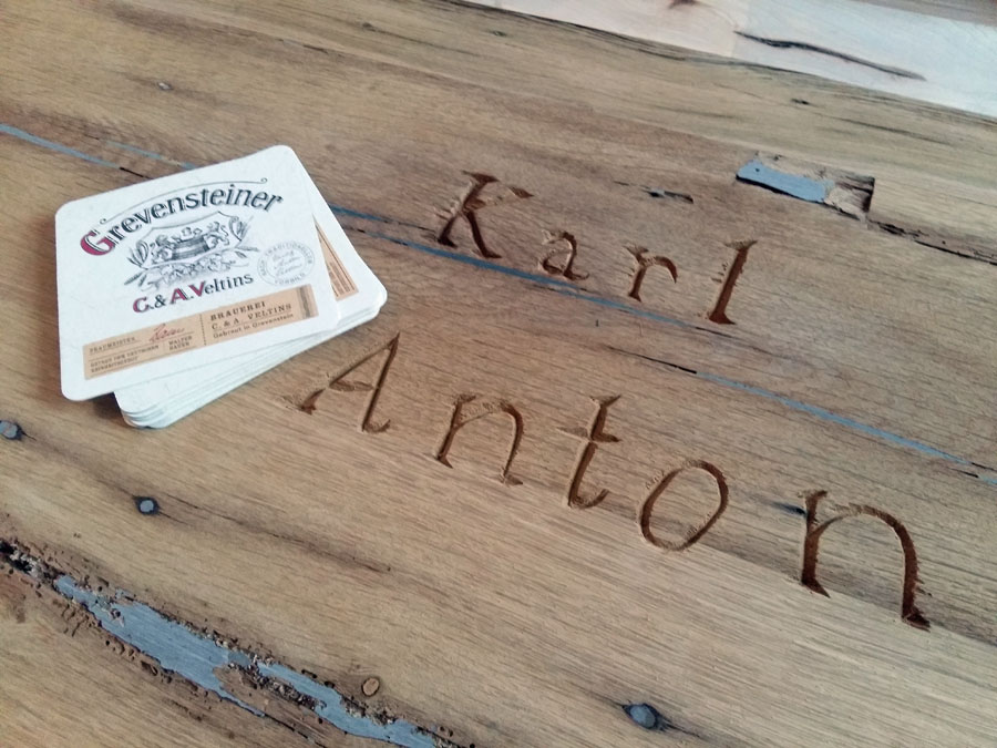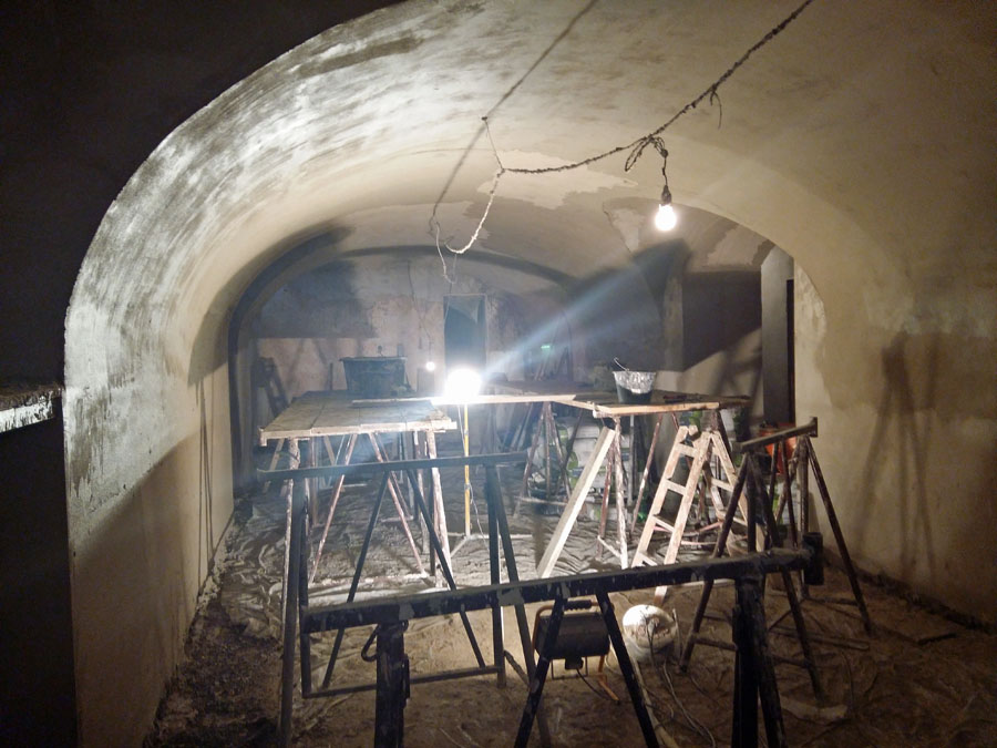 Inklu­si­ve Win­ter­gar­ten wird das Lokal rund 100 Sitz­plät­ze haben. Dazu kom­men etwa 110 im ehe­ma­li­gen Huse­mann-Kel­ler, der als „Schal­an­der“ wie­der eröff­net wird und wei­te­re 120 Plät­ze sind in der Außen­gas­tro­no­mie geplant – im Hof und auch im öffent­li­chen Raum. Wo genau, das wird der­zeit mit der Stadt noch abge­stimmt. Der Huse­mann-Kel­ler wird noch umfas­sen­der reno­viert als das Erd­ge­schoss. Der kom­plet­te Fuß­bo­den wur­de her­aus­ge­ris­sen und tie­fer gelegt. Der alte Ein­gang bleibt, wird aber um eine neue Innen­trep­pe und einen Auf­zug ergänzt. Auch die The­ke wird am gewohn­ten Platz ste­hen, dazu kom­men Steh­ti­sche und vier gro­ße Brauertische.