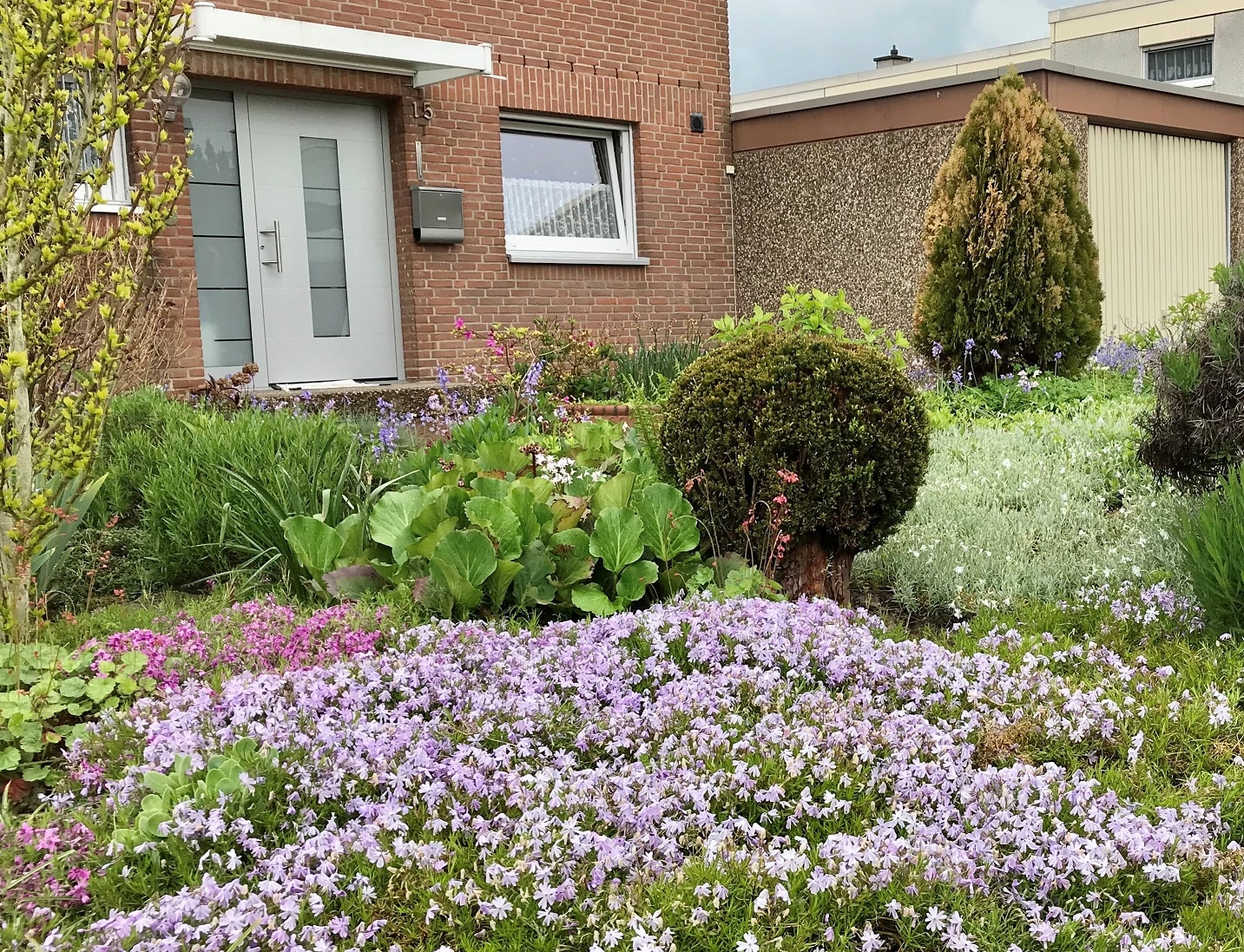 Denn oftmals ist es der Wunsch nach einem pflegeleichten Vorgarten, der Eigentümerinnen und Eigentümer motiviert, einen Stein- oder Schottergarten anzulegen. Doch was für viele ordentlich und gepflegt aussieht, birgt große Nachteile für Natur und Umwelt, aber auch für die Anwohnerinnen und Anwohner selbst: im Sommer erhitzen sich die Steine stark und bilden auch nachts noch regelrechte Hitzeinseln direkt am Haus. Darüber hinaus verringert sich die Fläche, die zur Versickerung von Niederschlägen geeignet ist. Besonders bei Starkregenereignissen können so große Wassermassen nur oberflächlich abfließen und die öffentlichen Verkehrsflächen und privaten Grundstücke werden überflutet.