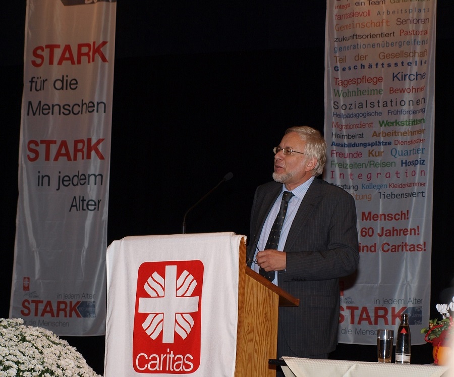 Christian Stockmann, Vorsitzender des Vorstandes, griff in seinen Abschlussworten die Rahmenbedingungen und Ökonomisierung der Sozialen Arbeit auf und welchen Einfluss diese auf die Caritasverbände haben. Gleichzeitig orientiert sich der Verband aber an dem Leitsatz ‚Der Mensch im Mittelpunkt unseres Handelns´ und an dem Jubiläumsmotto ‚Stark in jedem Alter – Stark für die Menschen´. Dies kann im Arbeitsalltag zu Spannungen führen. „Im Unterschied zu privatwirtschaftlichen Akteuren ist die Caritas aus Überzeugung heraus nicht nur ein Anbieter von sozialen Dienstleistungen, sondern versteht sich als Anwalt der Benachteiligten und setzt sich als Solidaritätsstifter für ‚Menschen in Not´ ein, auch wenn sich dort nichts verdienen lässt“, so Stockmann. Zum Abschluss dankte Stockmann allen Unterstützern des Caritas-Verbandes.