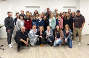 Ursula Funke, Einrichtungsleiterin und Koordinationsfachkraft des Sternenweg-Hospizdienstes und Denise Göckeler von der Jobkontakstelle (JoKa) hießen stellvertretend für alle Dienste im Haus die Besucher und Besucherinnen willkommen. „Nun schon seit einem Jahr sind hier alle Dienste des Caritashauses zusammengewachsen und verrichten den Dienst am Menschen“, zog Ursula Funke die Bilanz der gemeinsamen Arbeit in der Stembergstraße.