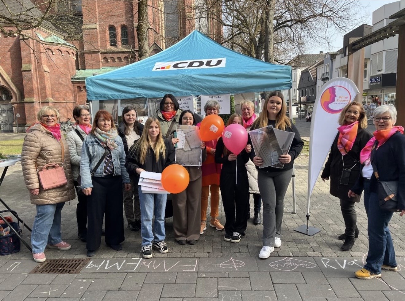 Arnsberg/Neheim. Mit einem Informationsstand in der Neheimer Fußgängerzone haben die Frauen in der CDU Arnsberg am Samstag, 7. März, über die Situation der Grimmeschule informiert. Gemeinsam mit Schülerinnen der Schule berichteten sie Passantinnen und Passanten über den aktuellen baulichen Zustand des Schulgebäudes.