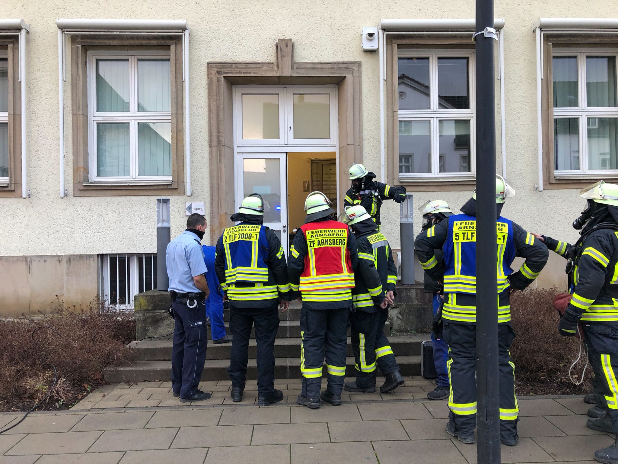 Arnsberg. „Unklarer Gasgeruch im Landgericht“ so lautete die Einsatzmeldung die den Löschzug Arnsberg gegen 10 Uhr zum Brückenplatz alarmierte. Vor Ort konnte die Ursache des unangenehmen Geruches mit Hilfe von Gasmessgerät und Wärmebildkamera schnell ausgemacht werden. Es gab einen technischen Defekt in der Notstromversorgung in folge dessen eine Batterie eine Reaktion gezeigt hat. Das meldet die Pressestelle der Feuerwehr Arnsberg.