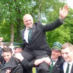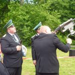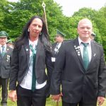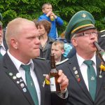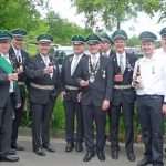 Am Sonntag freuten sich die Moosfelder Schützen über gutes Schützenfestwetter, nachdem beim Wolkenbruch am Samstag das Wohnzimmer des Hauptmanns auf seine Aufnahmefähigkeit getestet werden musste. 130 sollen es gewesen sein und Platz war angeblich nur noch im Ofen. Beim Schießen auf die Trophäen sicherte sich der scheidende König David Rüschenschmidt standesgemäß die Krone. Das Zepter holte sich Schießmeister Jürgen Dobbert und der Apfel ging an Martin Scheffler, der auch im Finale letzter Gegner von Christian Schwarm war. Innerhalb von nur sechs Minuten war das Abwerfen des Kindervogels entschieden. Hier setzte sich Artur Banach durch. Der zwölfjährige Schüler der Grimmeschule wählte seine neunjährige Schwester Angela zur Mitregentin. Bereits am Freitag hatte sich Sebastian Diers den Titel des Schützengecks gesichert. Der 32-Jährige ist Informatiker und bei den Schützen Fahnenoffizier. Am Samstag ehrten die Moosfelder zudem ihr Silberkönigspaar Reinhard und Christel Schröder.
