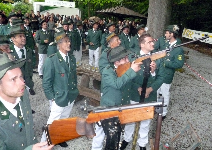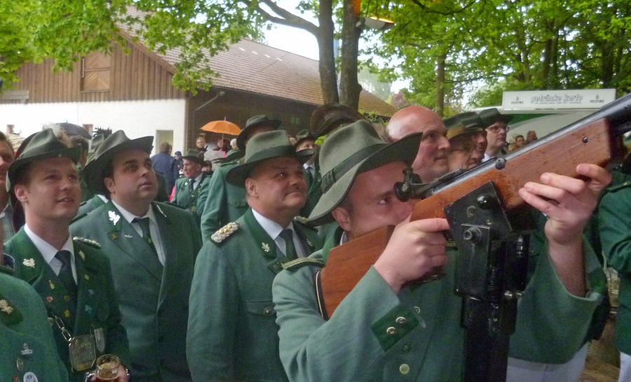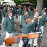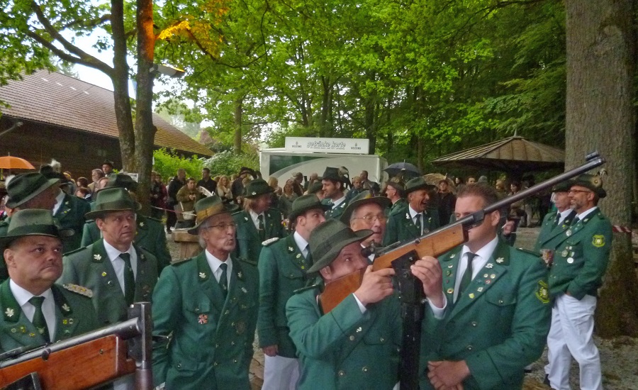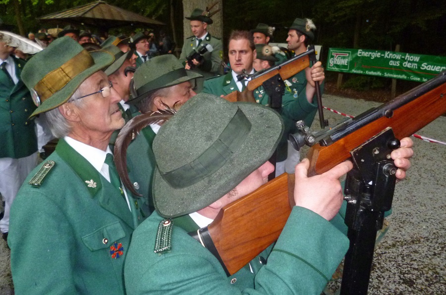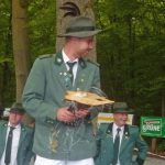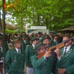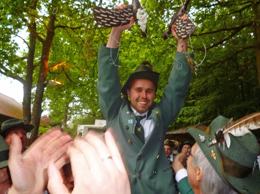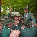 Breitenbruch. Erstmals hat Breitenbruch bereits am Abend des Pfingstsamstags einen neuen Schützenkönig. „Buddha“ gegen „Kappes“ hieß das spannende Duell unter den mächtigen Breitenbrucher Eichen. Am Ende setzte sich Christopher Schartau gegen seinen Stiefbruder Stephan Kemper durch. Um 18.25 Uhr trennte „Kappes“ mit einem gut gezielten Schuss den letzten Faden vom Ring und der Vogel stürzte unter dem Jubel der Schützenbrüder herab.