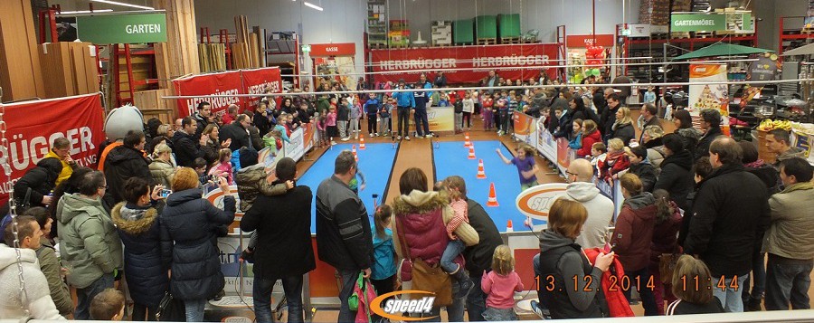 Im Baumarkt Herbrügger nahmen etwa 160 Kinder am Finale der EDEKA speed4 Meisterschaft teil. Vor Ort sorgten die rund 700 Besucher für eine Atmosphäre wie bei einem großen Sportereignis. Die Begeisterung war den Kindern und den anfeuernden Eltern, Großeltern, Geschwistern und Freunden anzusehen. Für die sportlichen Kinder gab es am Finaltag reichlich frisches Obst und erfrischende Getränke.