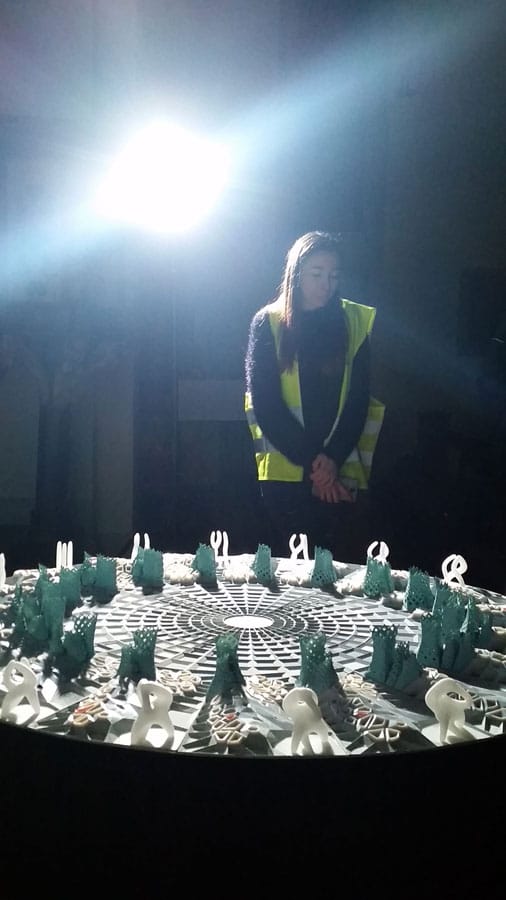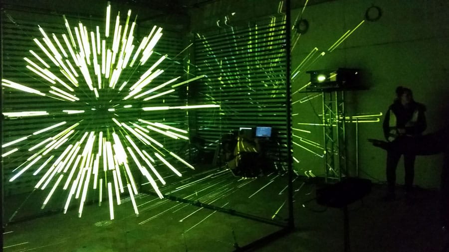 Die „enlightment machine“ im Forum der Bibliothek verwandelt Klaviermusik in Farben, jeder darf und soll sich an das Klavier setzen. (http://lichtforumnrw.de/Projektseiten/dark/home/enlightmentmachine/)