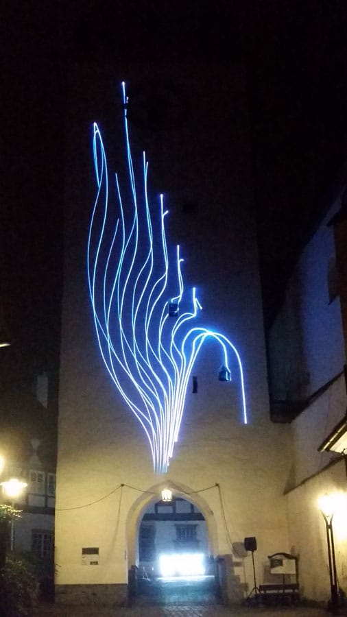 Alles in allem ein Riesen-Spaß, bei dem man gleichzeitig viel über neue Möglichkeiten des Lichts und der Steuerung bzw. Beeinflussung von Licht lernen kann. Und mal wieder ein neues kulturelles Highlight für Arnsberg, den ganzen Abend war die Stadt trotz eher kühler Temperatur voller Menschen und