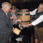 Auch Prinz Luitpold zog Parallelen zwischen Bayern und Sauerländern als fleißigen Bergvölkern. Dass seine Vorfahren über Generationen ihren zweitgeborenen Sohn als Fürstbischof nach Köln geschickt haben, war ihm natürlich bekannt. Letztlich habe das ja zum Aussterben der Münchener Linie geführt, scherzte er. Zudem erinnerte er daran, das die Wittelsbacher nicht nur 800 Jahre Bayern regiert haben, sondern auch 750 Jahre Bier gebraut haben. Dem wurde dann auch gleich die ganze Aufmerksamkeit geschenkt. Klaus Humpe pries noch das Hell, Dunkel und Weizen aus der königlichen Brauerei an, da hatte Bürgermeister Hans-Josef Vogel auch schon das Freibier-Faß angestochen – mit minimalen Spritzern.