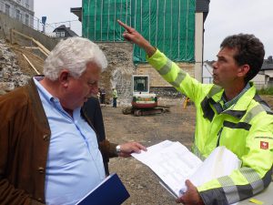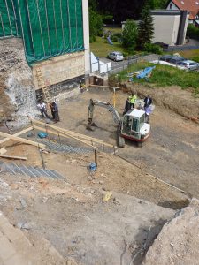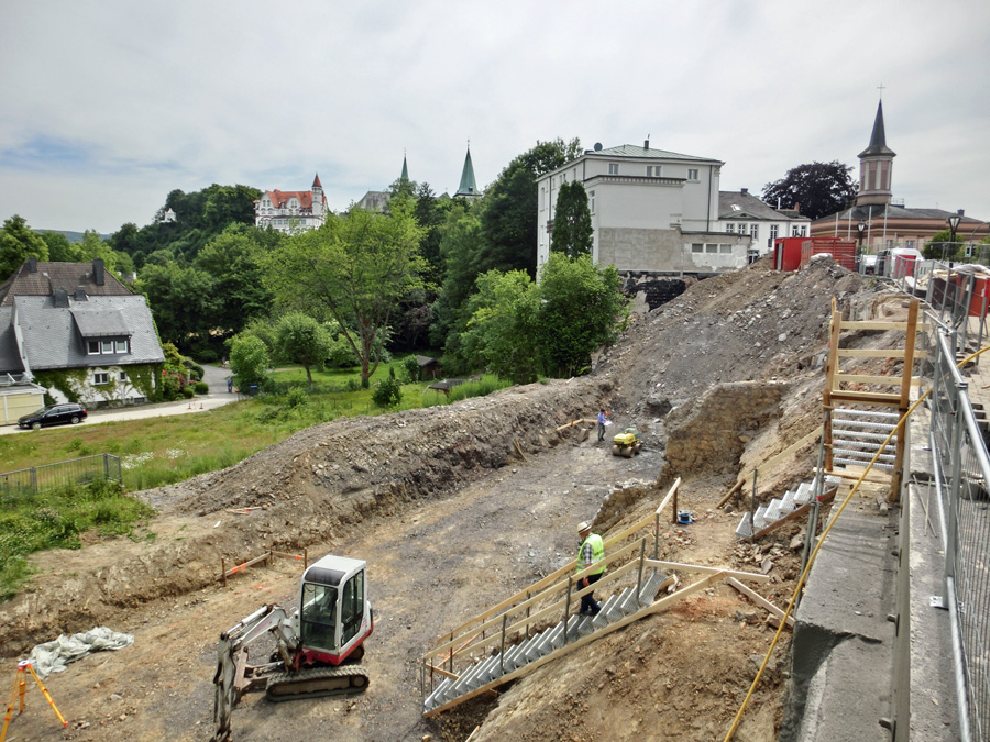 „Insgesamt war das eine sehr anspruchsvolle Aufgabe, auch wegen der total unterschiedlichen Bodenverhältnisse von Fels bis Lehm“, so Dietrich. Eine Aufgabe, die zudem eine enge Kooperation zahlreicher beteiligter Firmen erforderte. Neben dem geotechnischen Büro PTM waren und sind das Spezialtiefbauunternehmen Feldhaus Bergbau , das Tiefbauunternehmen Driller, die Rohbaufirma Manuel Santos und die Bohrfirma Schutzeichel tätig, dazu Statiker und Architekt.