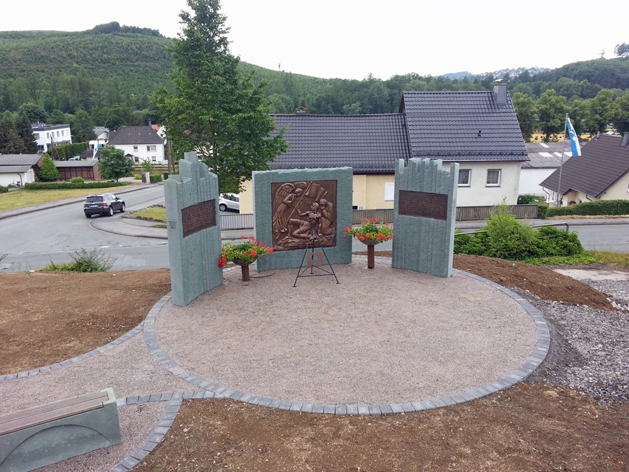 Das Denkmal-Komitee war 2012 von Ortsheimatpfleger Hubert Wienecke ins Leben gerufen worden. Das sanierungsbedürftige Ehrenmal sollte grundlegend erneuert und versetzt werden, um der Kirchengemeinde eine neue Zufahrt zu Kirche und Pfarrheim zu ermöglichen. Das marode Ehrenmal wurde schließlich im November 2014 abgerissen und der Kirchenvorplatz komplett umgestaltet. Hierbei war es vor allem dem ehrenamtlichen Engagement der örtlichen Vereine, den vielen freiwilligen Helfern aus dem Dorf und natürlich den Spendern und Sponsoren zu verdanken, daß bereits im Juni 2015 erstmals am neuen Ehrenmal ein Kranz für die Gefallenen und Vermißten der beiden Weltkriege niedergelegt werden konnte. Die Planungen für die Umgestaltung des Platzes übernahm Frau Hoberg-Klute aus Stockum und die Gestaltung des neuen Ehrenmals oblag Bildhauer Thomas Greitemann aus Seidfeld. Dessen Vater war bereits an der Gestaltung des vorherigen Ehrenmals aus dem Jahre 1967 maßgeblich beteiligt gewesen. Die endgültige Fertigstellung des Kirchenvorplatzes und des Ehrenmals konnte dann im Mai des letzten Jahres mit einer großen Einweihungsfeier begangen werden. Nachdem nun noch ein Handlauf entlang des Weges zum Ehrenmal installiert werden konnte, hat der Verein seinen Zweck erfüllt und kann nun im Zuge einer Generalversammlung aufgelöst werden.