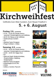 Sundern. Der Heimatverein Sundern freut sich, dass am kommenden Wochenende, am Freitag den 05. August und am Samstag den 06. August, nach zwei Jahren Pause wieder das Kirchweihfest Christkönig in Obersundern stattfinden kann.