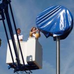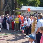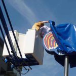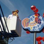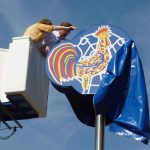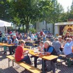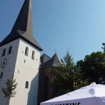 Hüsten. In Hüsten ist der Kirmeshahn aufgesetzt. Das heißt, in 20 Tagen geht es los mit der über 1000-jährigen Kirmes und dem größten Volksfest des Sauerlands. Bei strahlendem Sonnenschein – „wie es sich für Hüsten gehört“, so Ingo Beckschäfer von der Kirmesgesellschaft – enthüllte die Landrätin Ulla Beckmann am Samstag zur Mittagszeit den Kirmeshahn in luftiger Höhe auf dem Hüstener Markt. Rundherum gab es neben der historischen Kirmesorgel mit Bratwurst, Bier und Blasmusik schon einen kleinen Vorgeschmack auf das große Fest. Die Kinder freuten sich an den bunten Luftballons. Ingo Beckschäfer, der auch Ulla Beckmann beim Enthüllen assistierte und den Steiger steuerte, dankte dem Musikverein Müschede und der Jugendfeuerwehr Hüsten für ihre Mitwirkung.