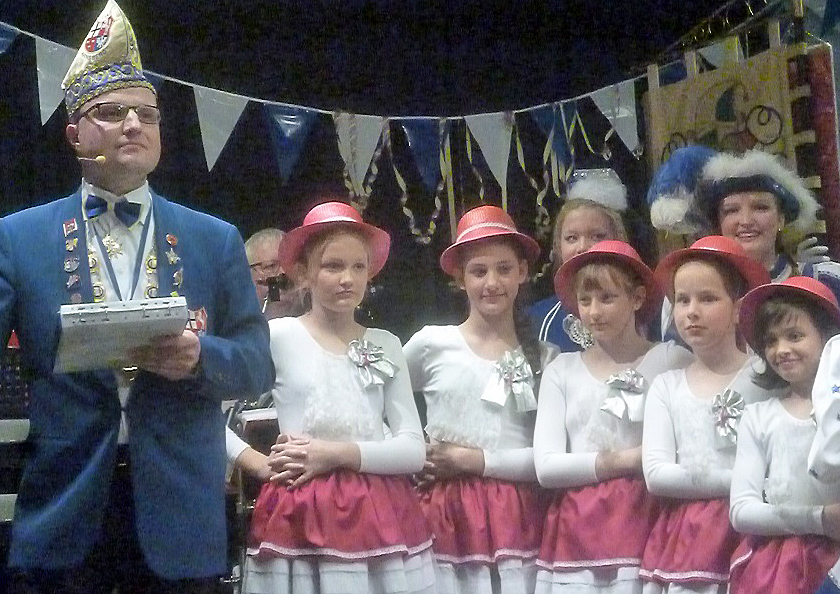 Die klei­nen und gro­ßen Tän­zer der KLA­KAG waren auch im Pro­gramm des Abends wie­der stark ver­tre­ten. Ob Gän­se­blüm­chen, Ted­dy­bä­ren oder Prin­zen­gar­de, Schloß­spätz­chen Kim­ber­ley oder Schloß­täub­chen Sina, für alle gab es viel Applaus. Die Kar­ne­va­lis­ten aus Giers­käm­pen und der Hei­lig-Kreuz-Gemein­de, das Wie­der­se­hen mit der Grup­pe „Drums for Fun“, Dirk Salz­mann, der als Run­ning Nerv immer wie­der kalau­ernd mit­ten im Saal auf­tauch­te, und nicht zuletzt die KLA­KAG-Eigen­ge­wäch­se sorg­ten für einen abwechs­lungs­rei­chen Abend, der musi­ka­lisch von den Pau­er­län­dern und dem Fan­fa­ren­korps Gün­ne, zwei alt­be­währ­ten Stüt­zen die­ser Ver­an­stal­tung, zusam­men­ge­hal­ten wur­de. Vor dem gro­ßen Fina­le aller Betei­lig­ten hat­te schließ­lich Fräu­lein Anna­bell ihren Auf­tritt als Top Act eines gelun­ge­nen Abends.