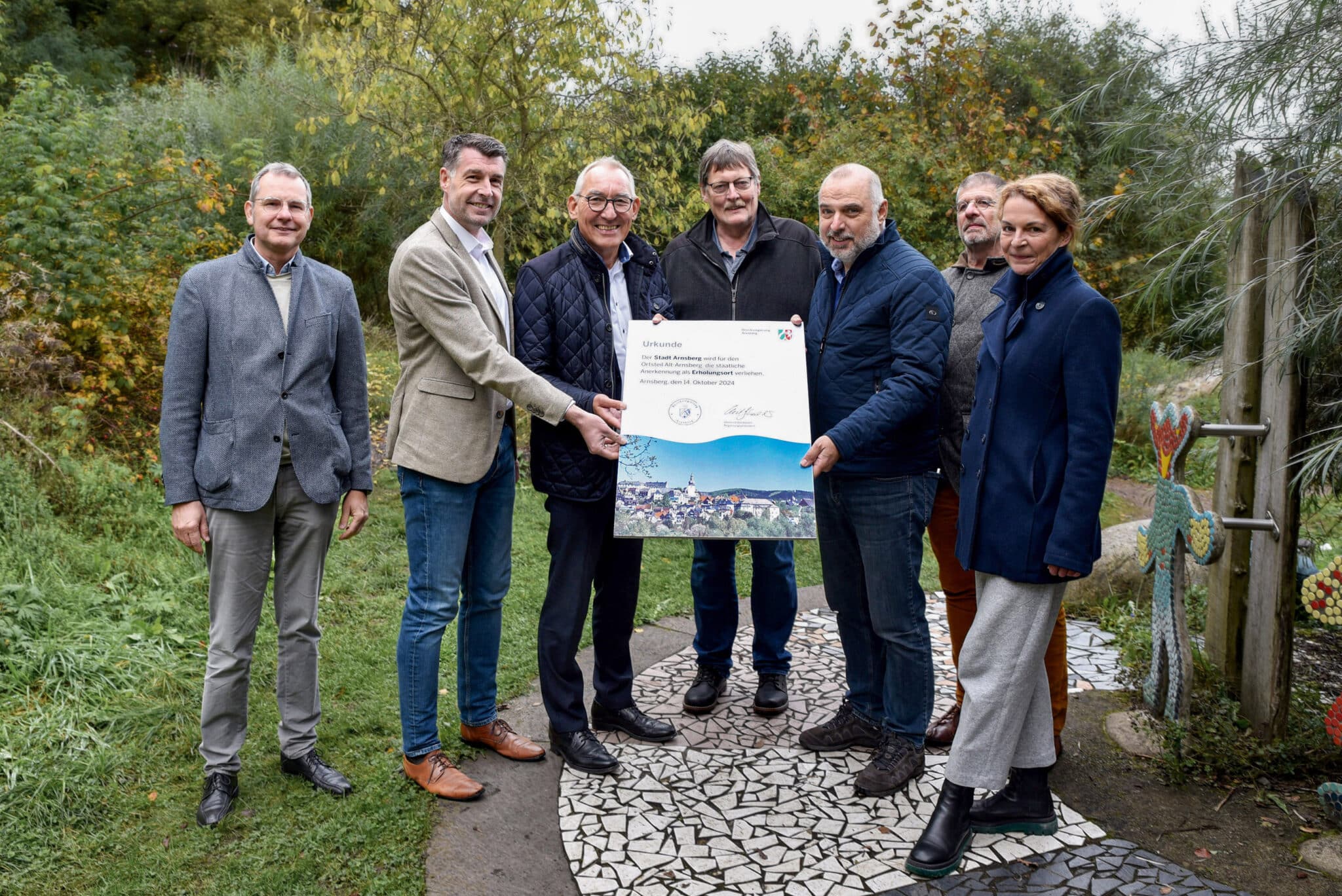 Arnsberg. Von schönen Grünflächen an der Ruhr, einer historischen Altstadt, großer gastronomischen Vielfalt über einen Barfußpfad sowie einem Naturschutzgebiet bis hin zu einem ausgereiften Rad- und Wanderwegenetz: Der Ortsteil Alt-Arnsberg der Stadt Arnsberg weist eine hohe Aufenthaltsqualität für Bürgerinnen und Bürger sowie Gäste auf. Genau das bescheinigt die Bezirksregierung Arnsberg nun der Stadt. Regierungspräsident Heinrich Böckelühr hat am Montag, 14. Oktober 2024, die staatliche Anerkennung des Ortsteils Alt-Arnsberg als Erholungsort an Bürgermeister Ralf Paul Bittner übergeben.
