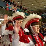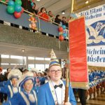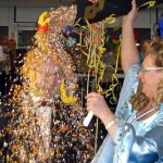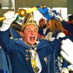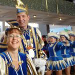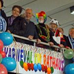 Als Stellvertreter des Rathauschefs entschuldigte Bannes den Bürgermeister, den Brüssel gerufen habe. Für alle, die einen Vogel erwartet hatten, hatte sich Bannes sich entsprechend kostümiert, eine Hühnermütze aufgesetzt und zur Sicherheit auch noch ein Schild umgehängt, dass er ein Vogel sei. Im Austausch für den Stadtschlüssel, den Bannes an die drei Karnevalsgesellschaften übergab, hatten diese ein Füllhorn mitgebracht. Gertrud Franke schüttete das Füllhorn mit ganz viel Konfetti unter dem Jubel des zahlreichen Publikums über Kämmerer und Hühnerkostüm aus und wünschte, dass für einige Tage statt der üblichen Sorgen und Probleme Frohsinn und Narretei ins Rathaus einziehen. Anschließend wurden noch die amtierenden Majestäten vorgestellt und sie konnten sich ins Goldene Buch der Stadt eintragen, bevor die Party so richtig losging.